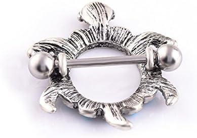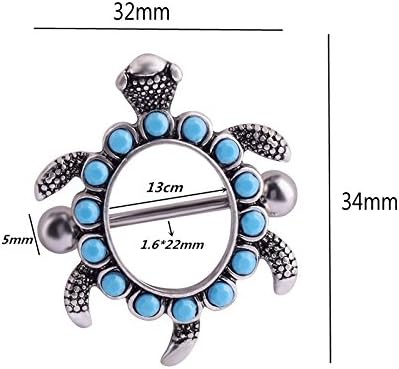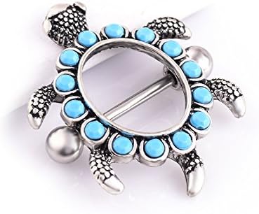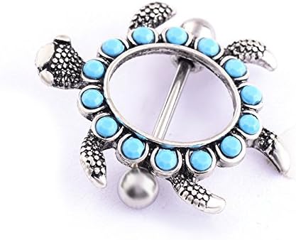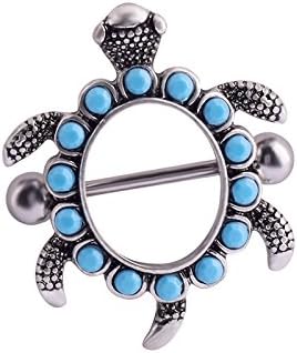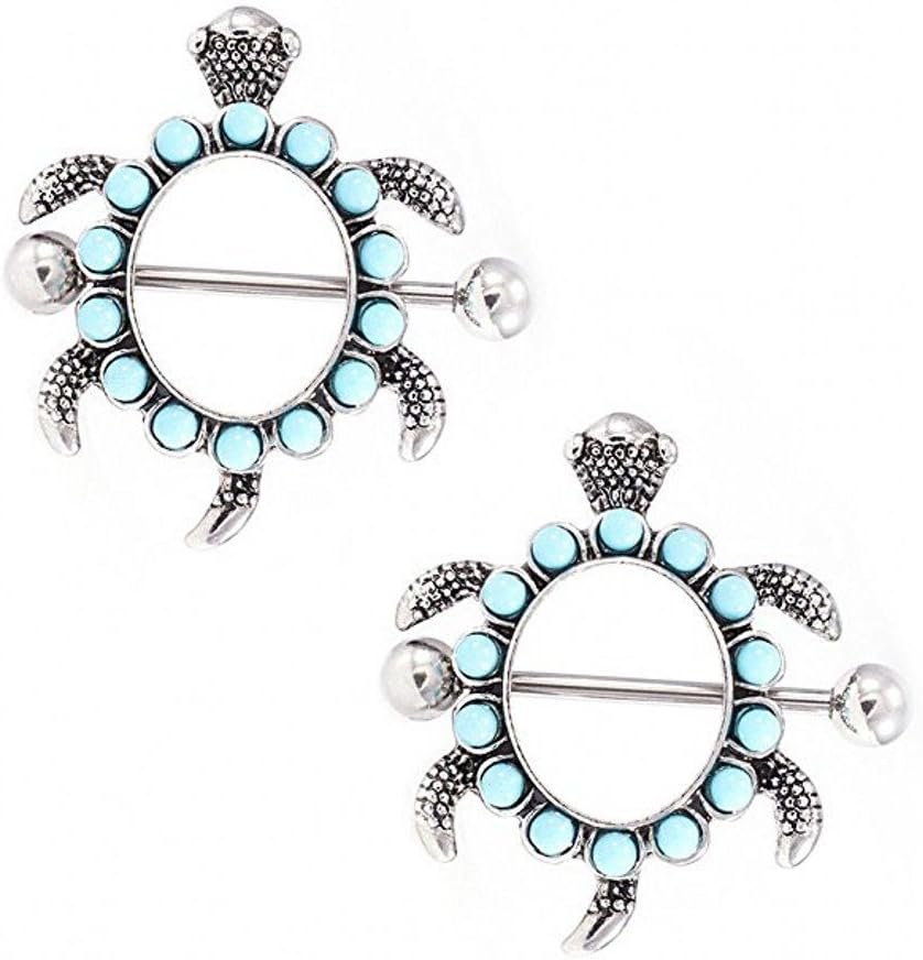 IPINK- زوج من تصميم السلحفاة مع أغطية حلمات Aqua Gems 14G