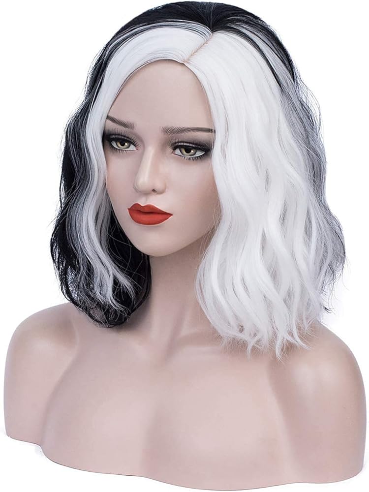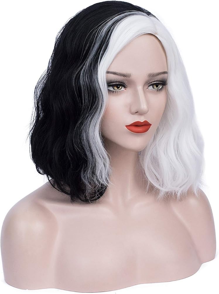 باروكات جوزيفي سوداء وبيضاء للنساء شعر مستعار مجعد قصير للحفلات التنكرية AD025BW
