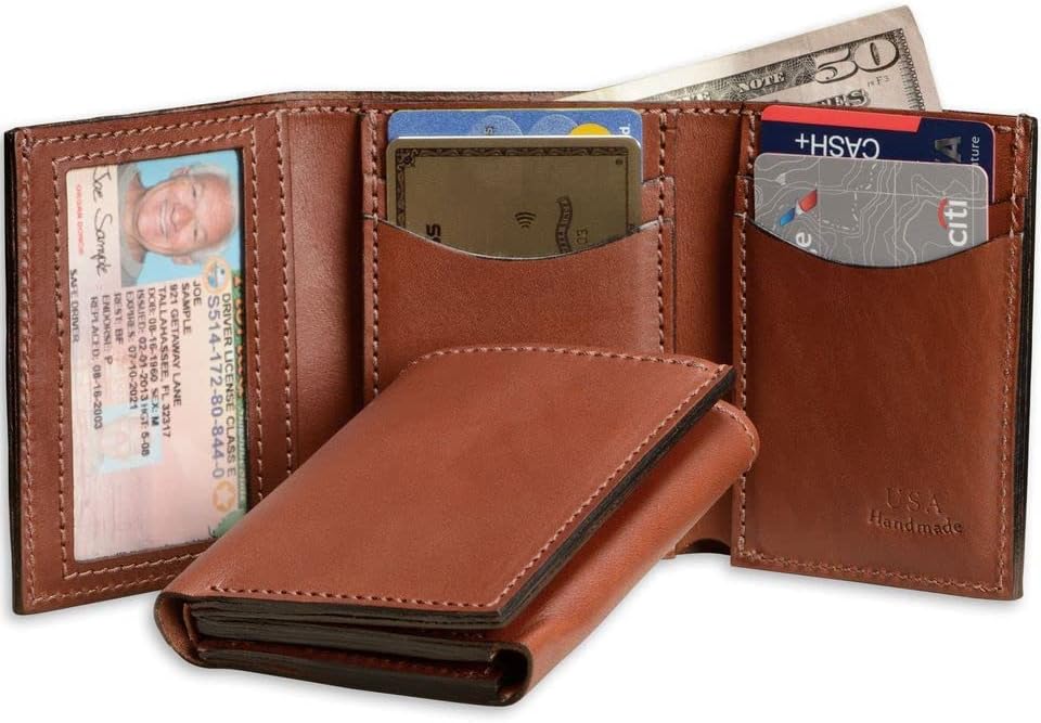 متعددة الاستخدامات - هذه المحفظة ثلاثية الطي المصنوعة من الجلد المحبب بالكامل هي خيار ممتاز للرجال الذين يهتمون بالجودة والتنوع. هذه ليست محفظتك الرخيصة المصنوعة في الخارج؛ هذه محفظة جلدية شديدة التحمل لأولئك الذين يبحثون عن جودة تدوم طويلاً.