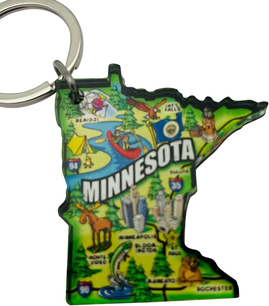 These glossy state shape map key chains are made from acrylic. These have the fun look of a retro map with images of landmarks and major sites and cities that make up the state. Comes sealed in a Westman Works package which will arrive in perfect condition. Made in the USA