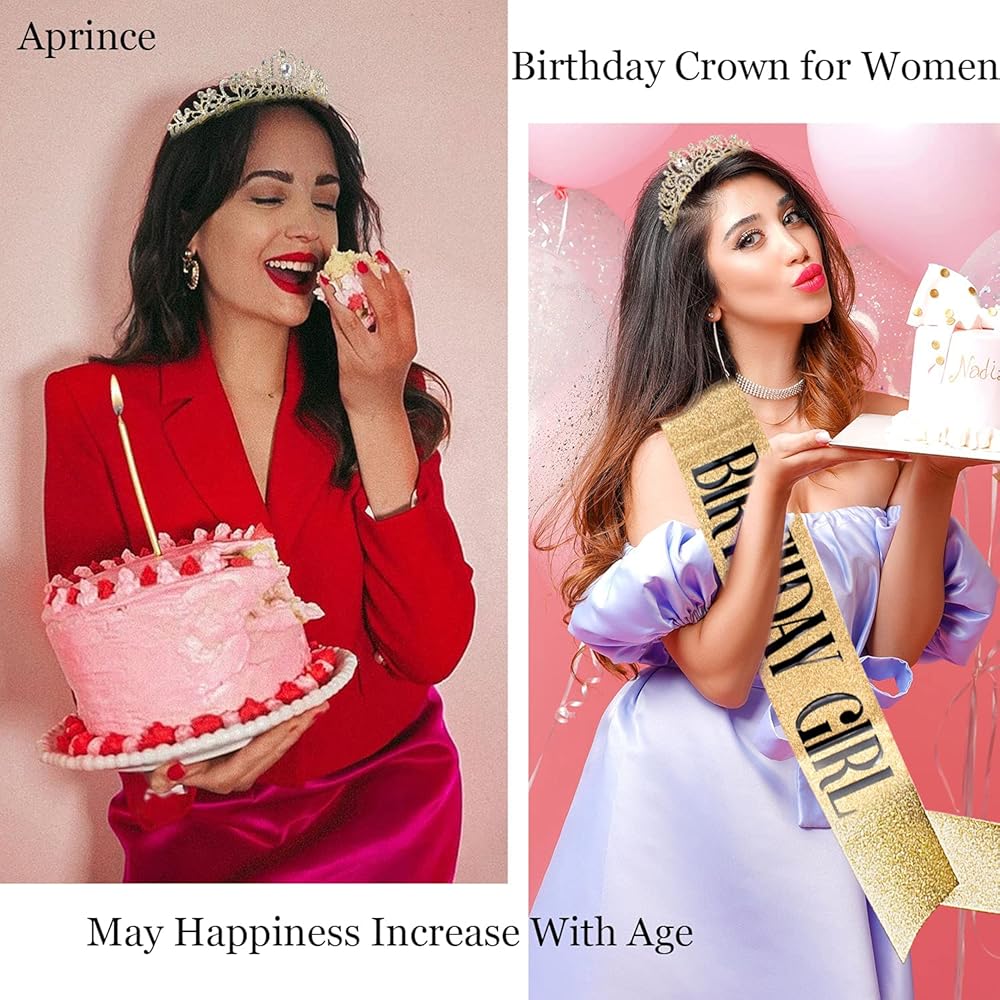 مجموعة تاج عيد ميلاد ووشاح فتاة عيد الميلاد من aprince، تيجان وتيجان من حجر الراين للنساء والفتيات، تاج ذهبي لعيد الميلاد، وشاح ذهبي، تاج الأميرة، تيجان الملكة لحفلات أعياد الميلاد، التقاط الصور