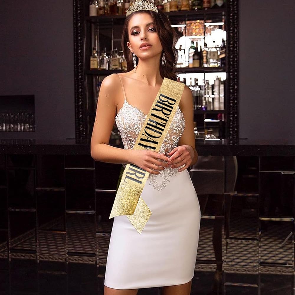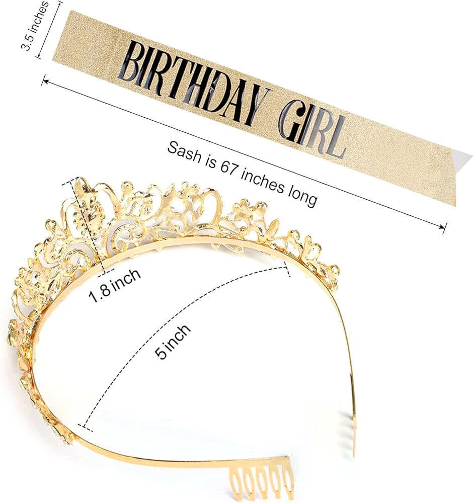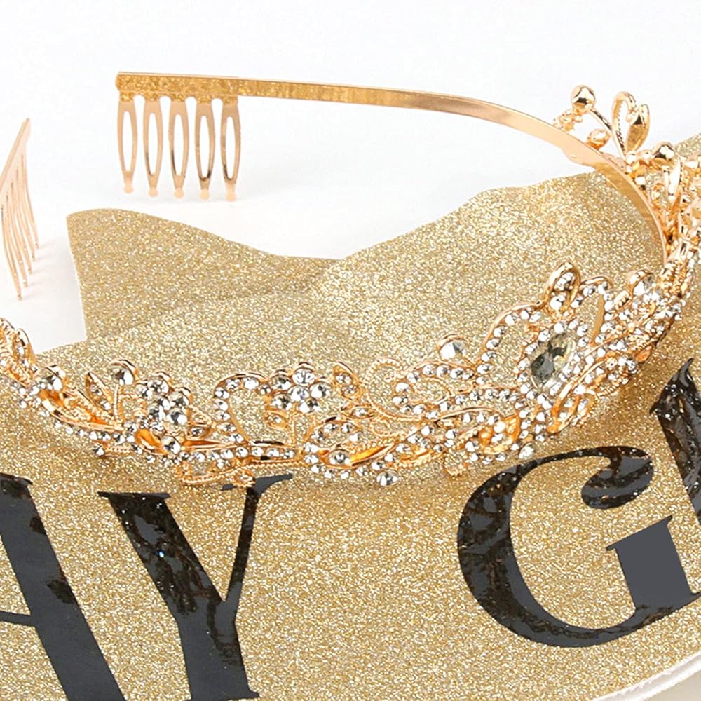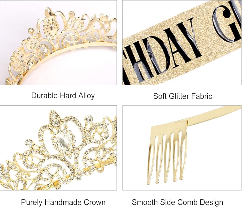 مادة عالية الجودة --- مرصع بكريستالات مذهلة بأحجام مختلفة، هذا التاج يلمع بشكل مشرق مثل الماس الذي لا مثيل له في الخلو من العيوب والوضوح. لن تسقط أحجار الراين ولن تنكسر السبيكة بسهولة. وشاح عيد الميلاد مصنوع من أجمل المواد الذهبية اللامعة ورقائق معدنية مضغوطة يدويًا مكتوب عليها "BIRTHDAY GIRL".