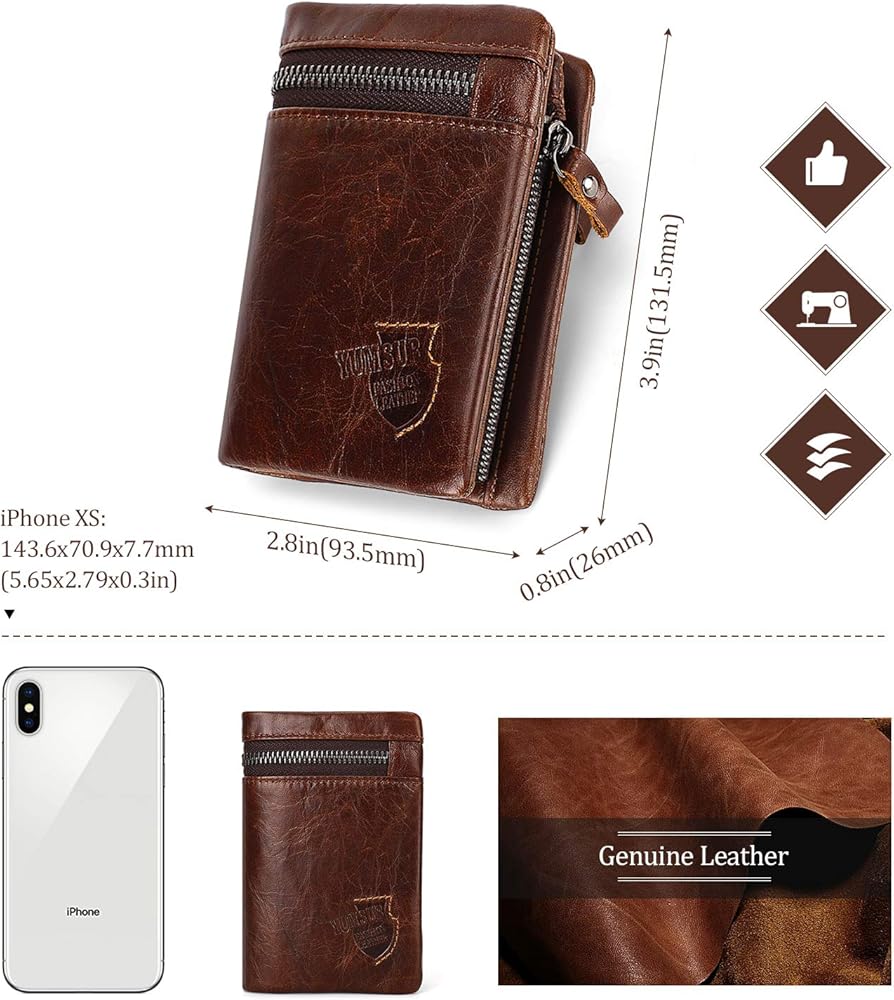 • ✿ محفظة من الجلد الطبيعي: محفظة Yumsur الرجالية مصنوعة من جلد البقر الأصلي مع مادة داخلية من البوليستر. إنه ذو سطح ناعم ومحكم ويمتلك نفس المرونة التي يتمتع بها الجلد القديم والعتيق.
