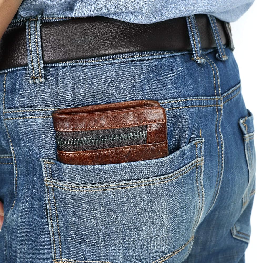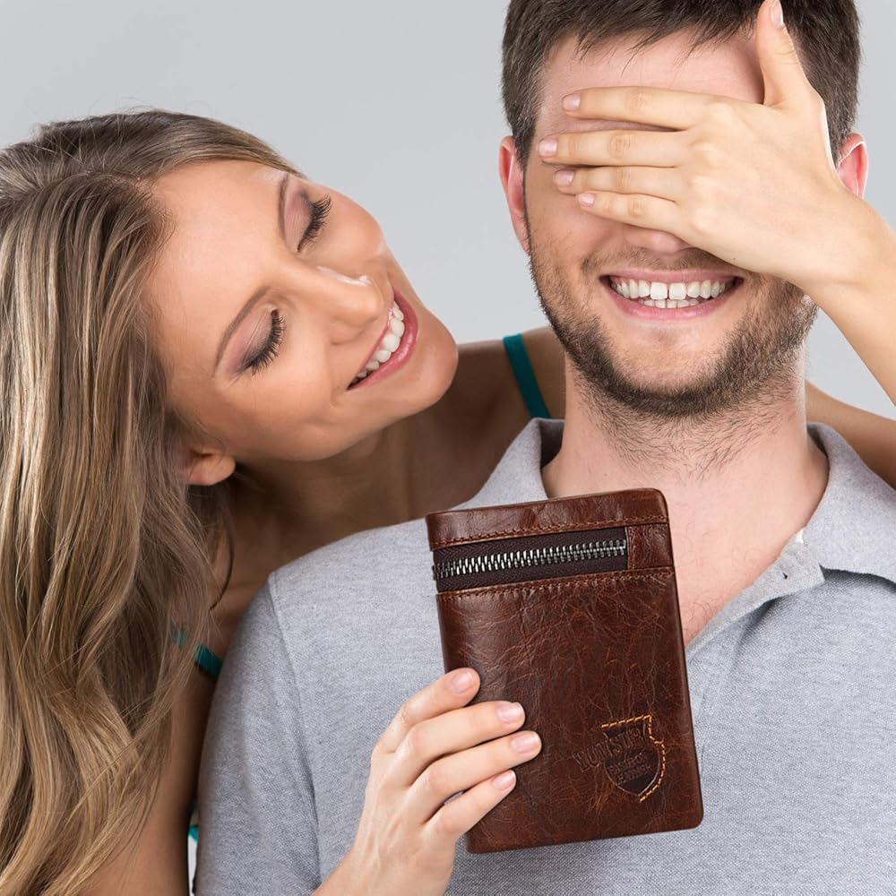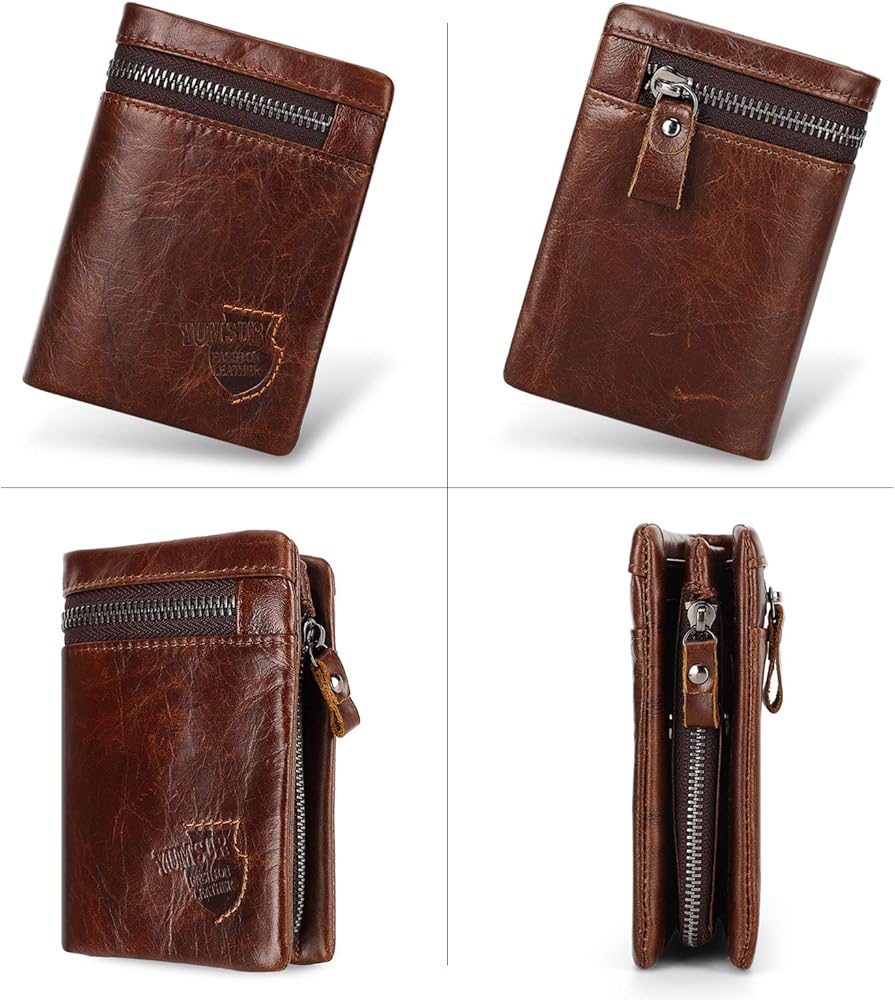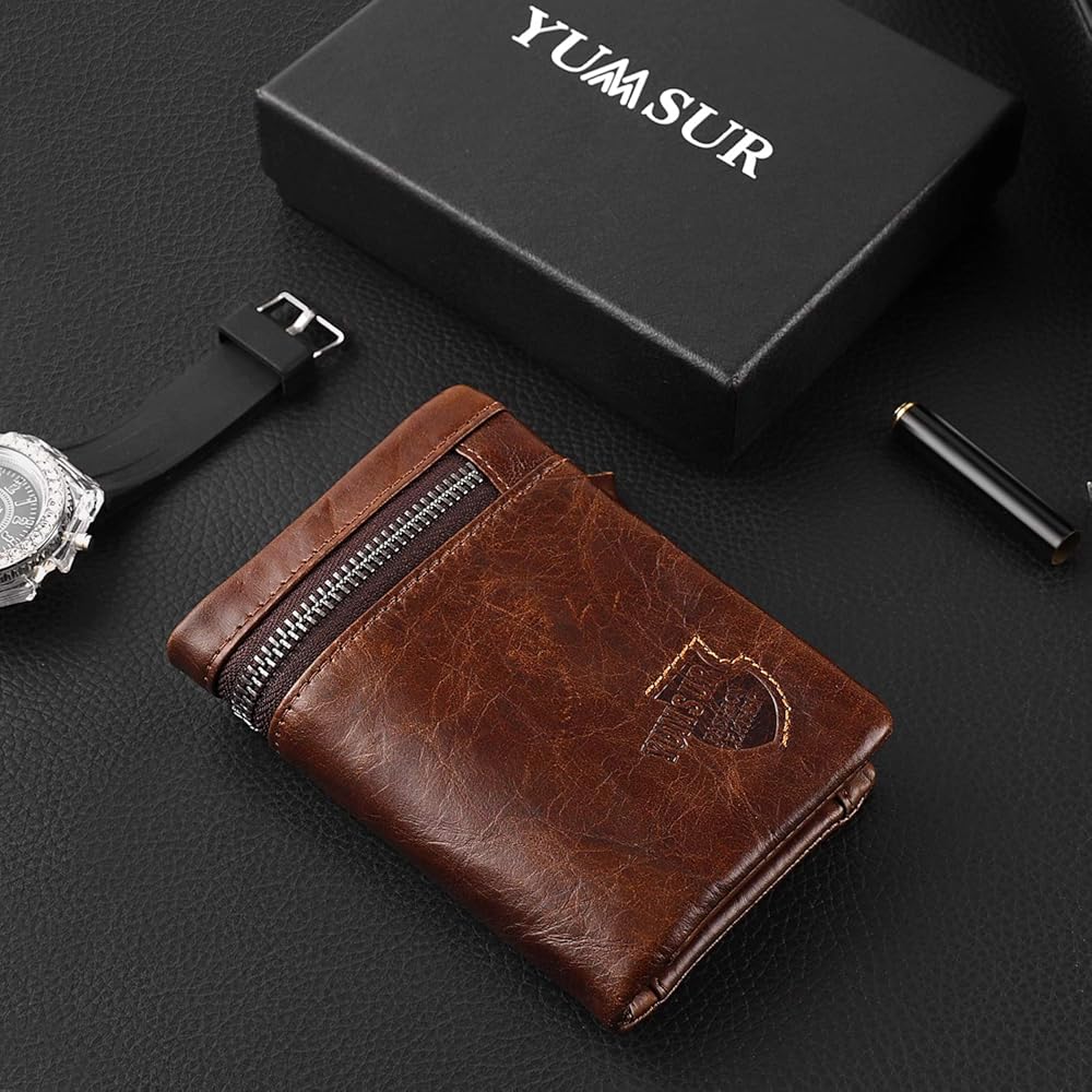 محفظة جلدية للرجال من YumSur، محفظة جلدية، محفظة RFID للرجال، حامل بطاقات الائتمان، محفظة جيب للعملات المعدنية، حقيبة بطاقات خارجية، محفظة ثلاثية الطي لعيد الحب، عيد الأب