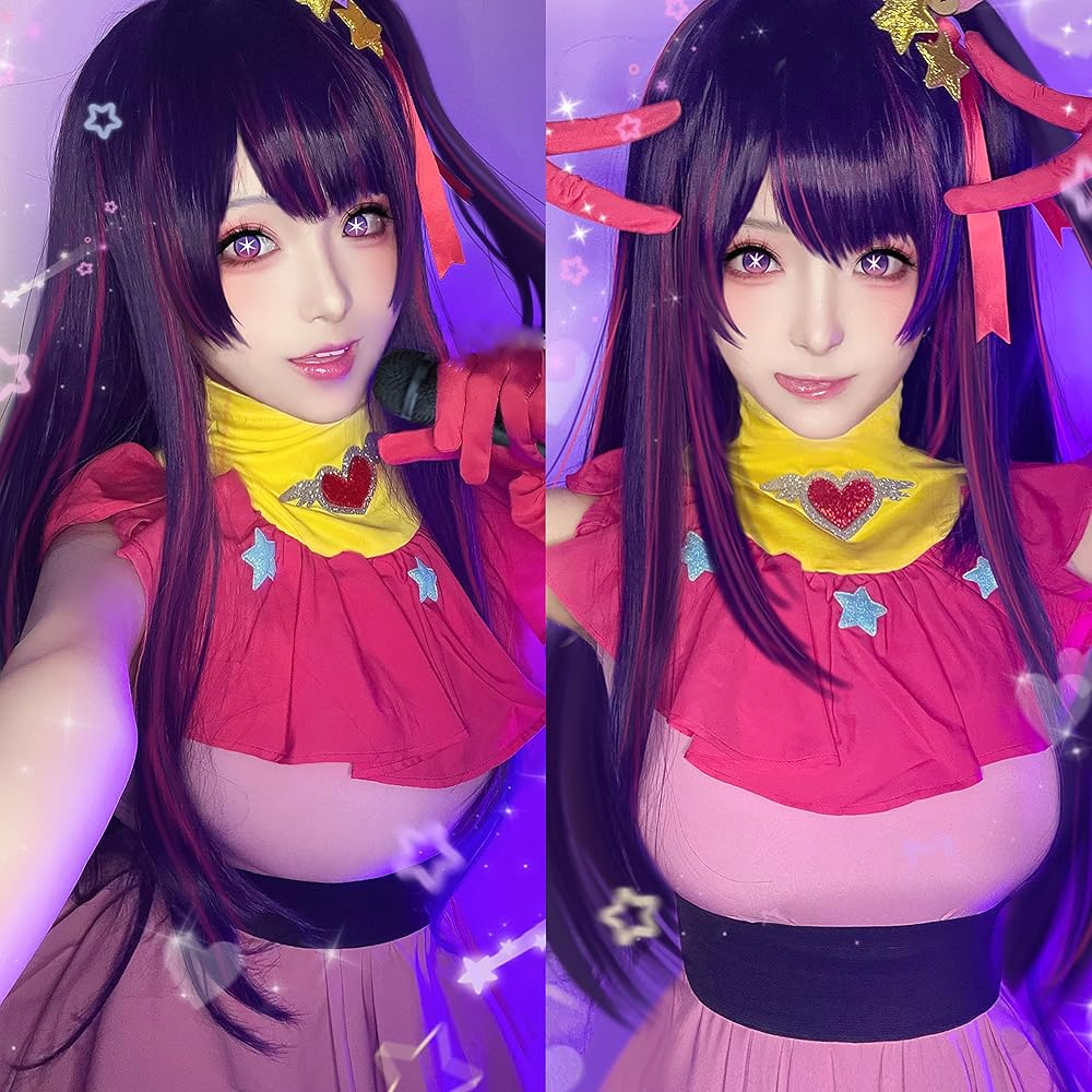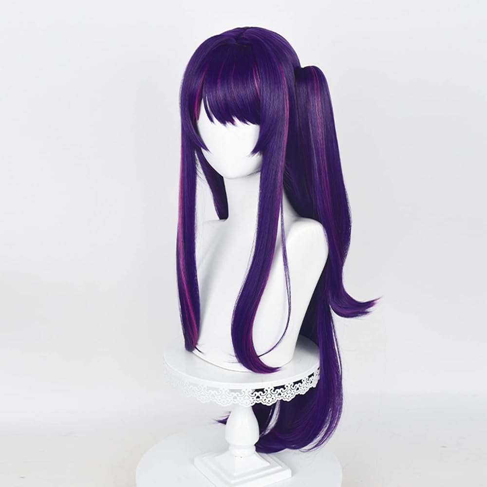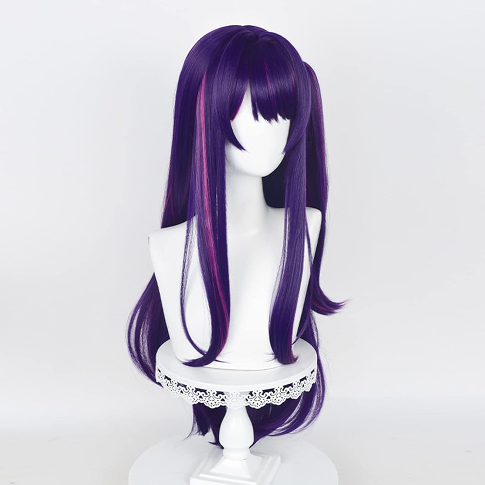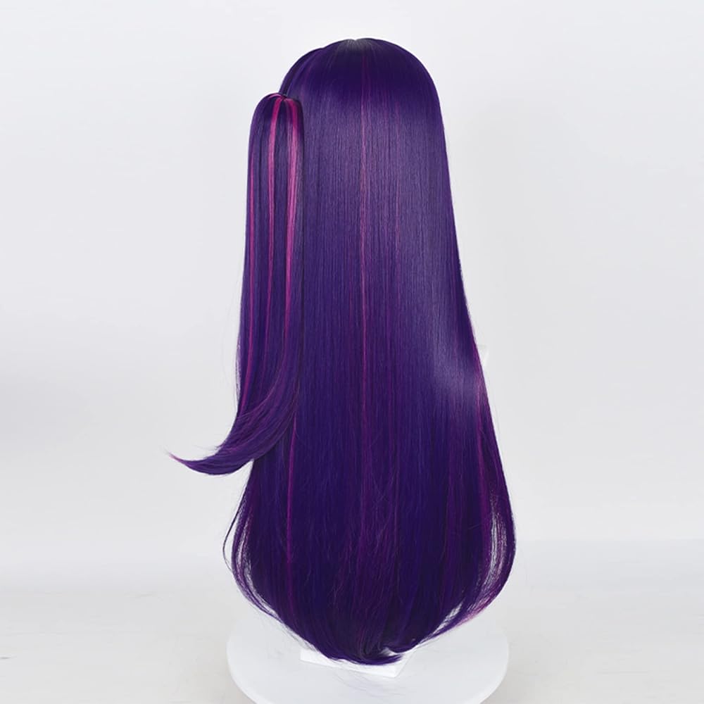 باروكة Ai Hoshino لأزياء Anime Oshi No Ko Cosplay، باروكة أرجوانية وردية مع ذيل حصان للفتيات والنساء، شعر مستعار طويل مستقيم بلونين مع غرة، شعر مستعار متعدد الألوان للهالوين (أرجواني)
