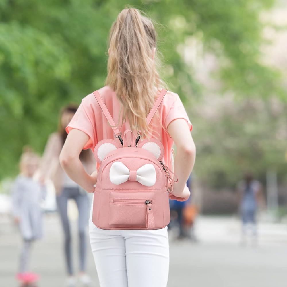 أشرطة مريحة وقابلة للتعديل: أحزمة الكتف الناعمة والظهر مبطنان، مما يساعد على تجنب الألم ويمنحك شعورًا أفضل عند حمل حقيبة الظهر الوردية الصغيرة.