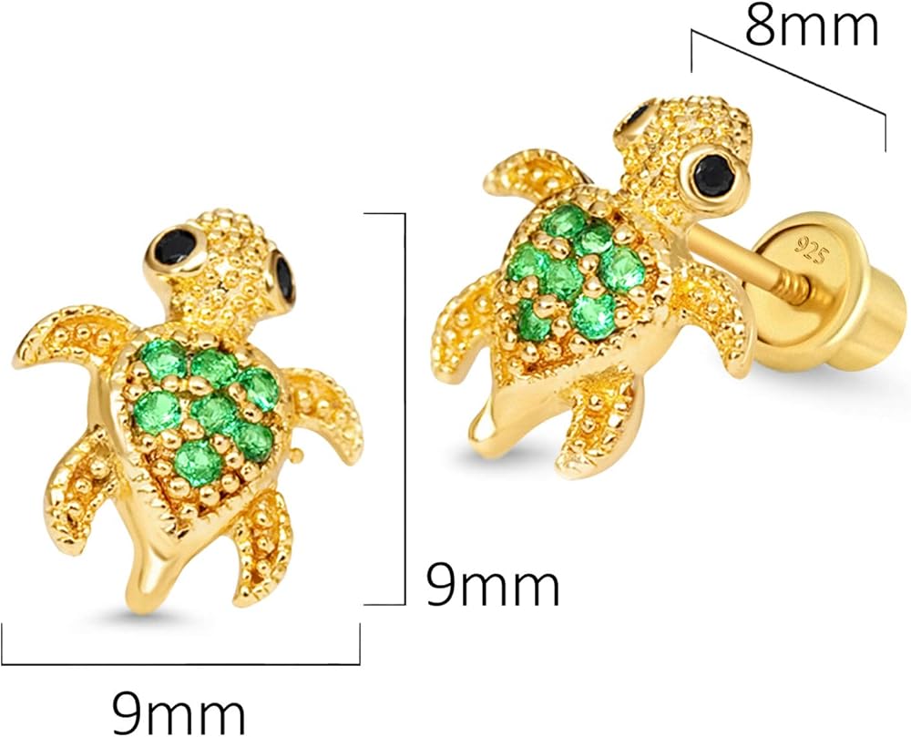 These beautiful earrings are composed of 14k gold plated over brass. The gold plating enhances its shininess to make it look more vibrant look to it. The cubic zirconia (CZ) is a delicate add on and further deliver its brilliant look. The screwback is a safety ball earring backing that screws on and locks thus preventing for any poking in the back of the earlobe and lessening chances of lost earrings. These are for the safety of everyone from adults, teens, toddlers, to babies. All of our children's earrings comply with applicable Children's Product Safety Regulations by ASTM (American Society for Testing and Materials), they are approved by for CPC (Children's Product Certificate) to make guarantee the safety of your children. Your baby deserves to be safe and unharmed at the same time look cute with their brand new earring.