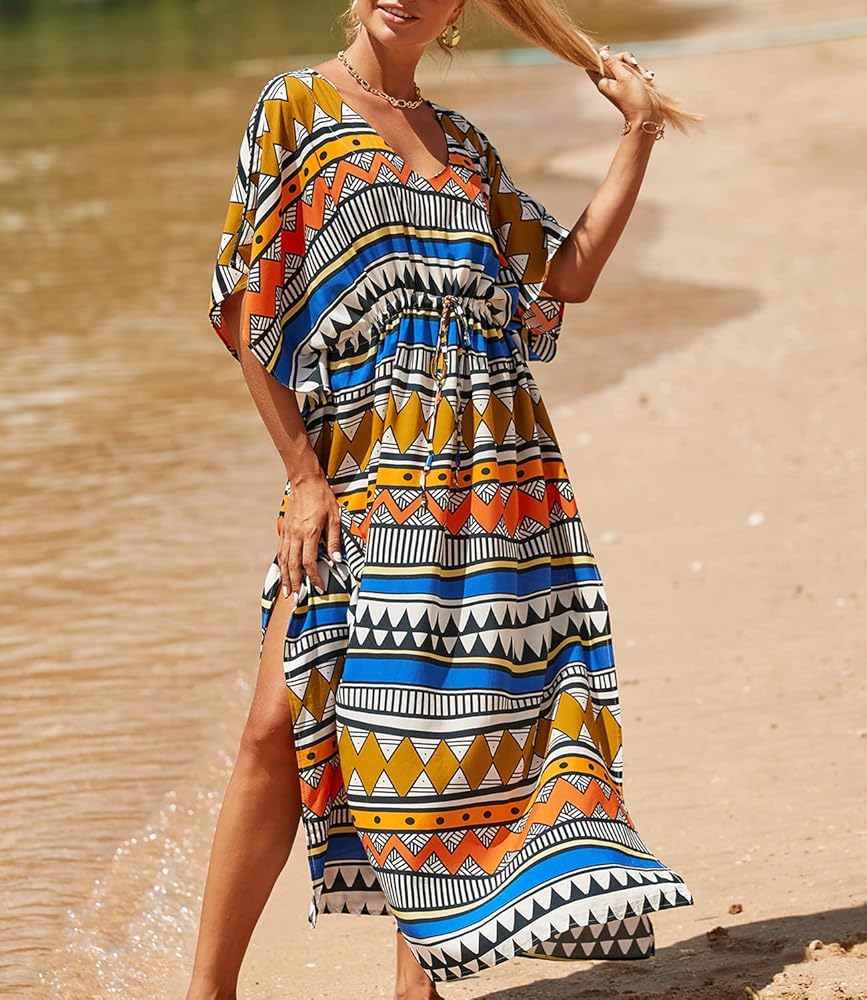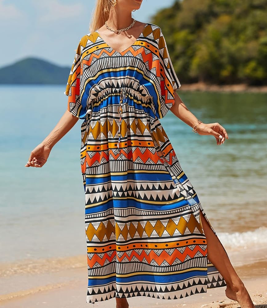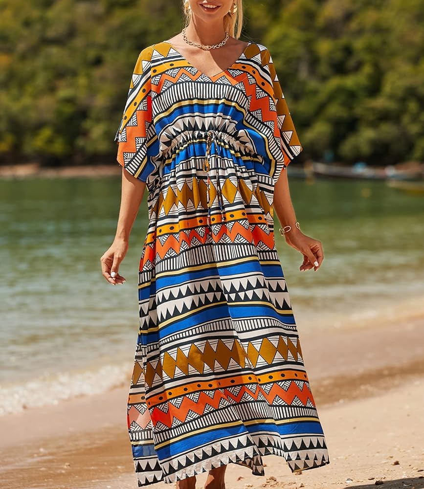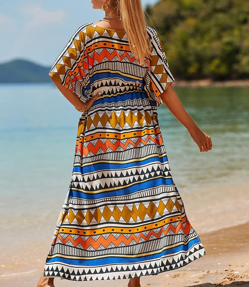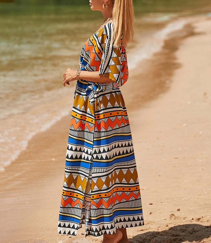 - فستان طويل للشاطئ مصنوع من قماش رايون ناعم وخفيف الوزن، مثالي لفصل الصيف