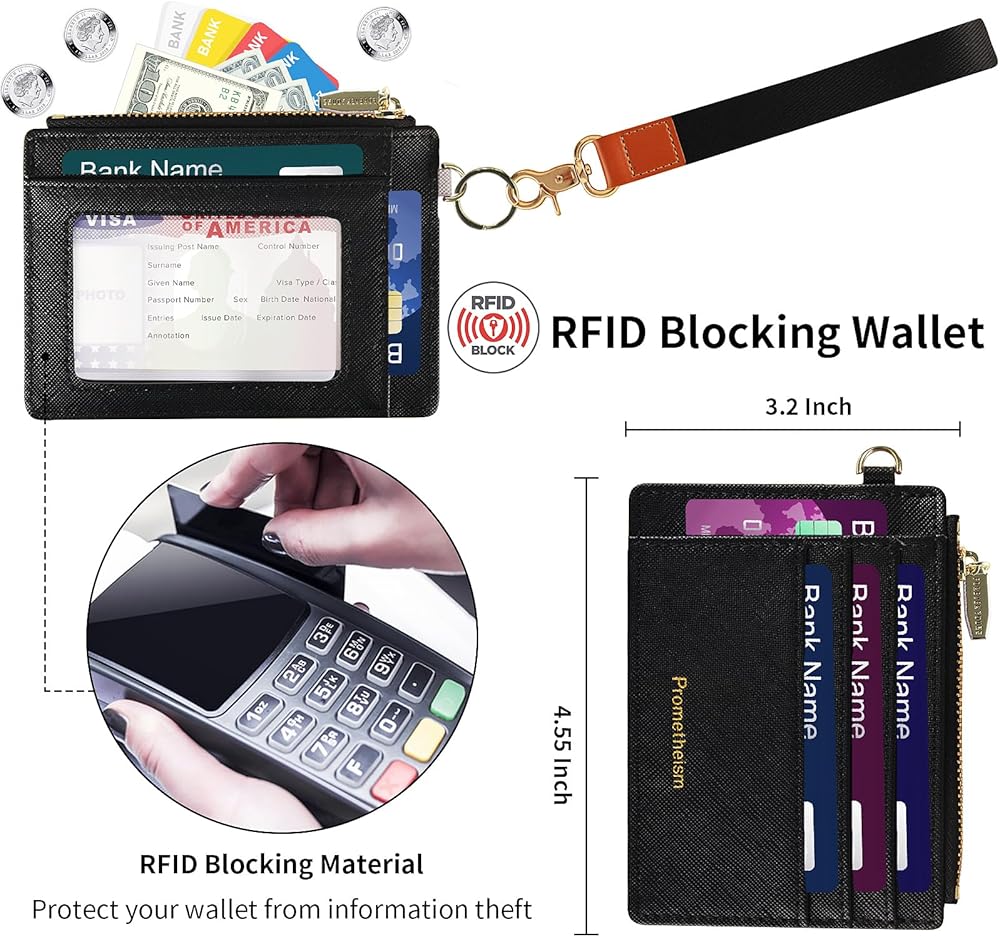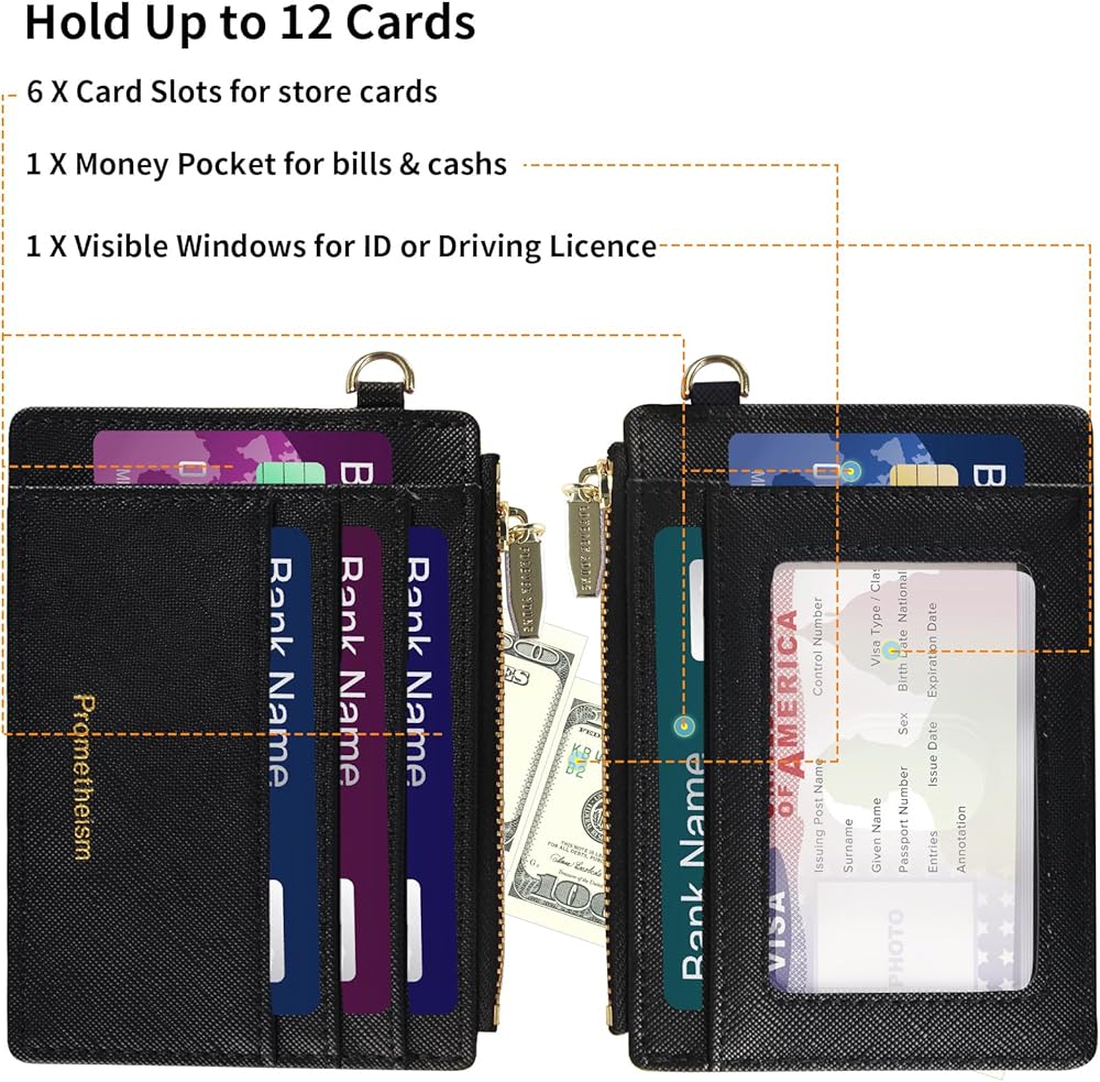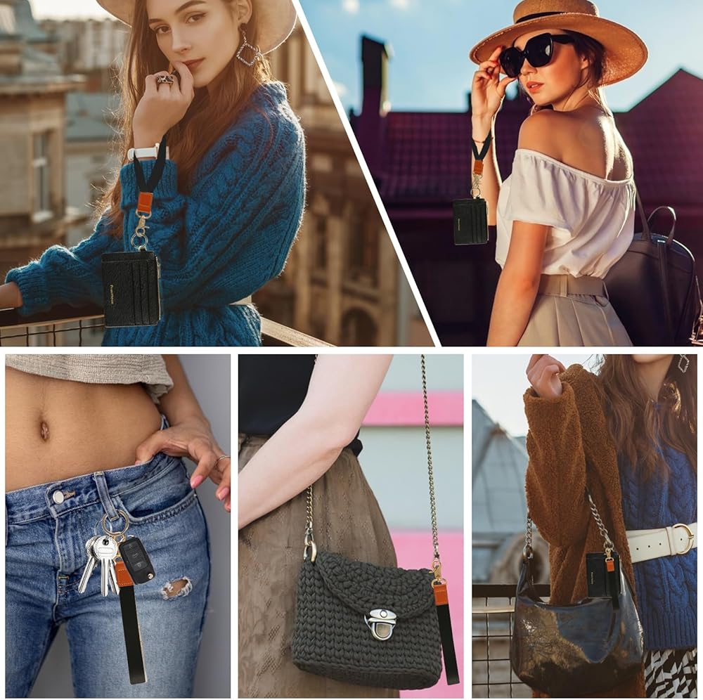 4: التخزين:: 6 فتحات للبطاقات / 1 × نافذة كبيرة لبطاقة الهوية / 1 × جيب رئيسي بسحاب / 1 × سوار معصم قابل للفصل مع حلقة مفاتيح، وفتحات بطاقات موسعة ونافذة شفافة لبطاقة الهوية مع فتحة إبهام تجعل من السهل عليك الوصول إلى البطاقات. يمكن تنظيم بطاقات الائتمان والنقود والعملات المعدنية والمفاتيح وبطاقة الهوية أو رخصة القيادة بشكل جيد في الداخل.