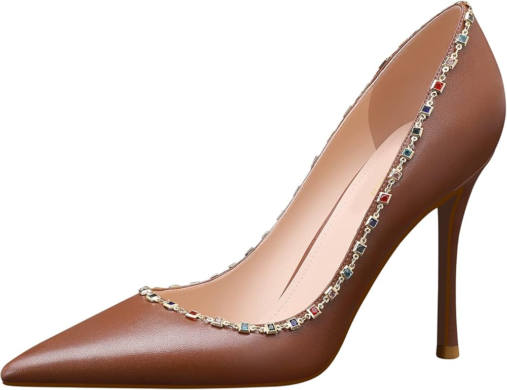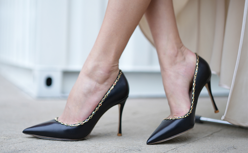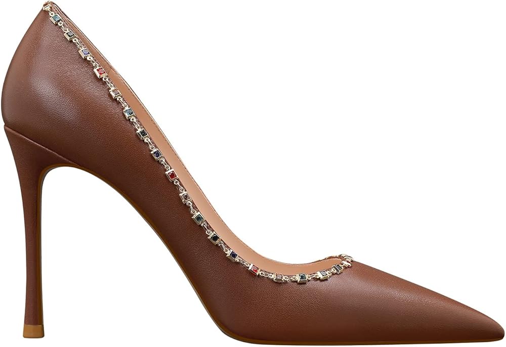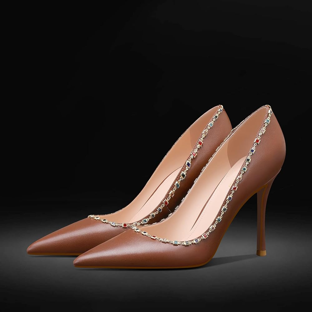 - كعب عالٍ للسيدات أنيق: الكعب يتوافق مع اللون الكلاسيكي النقي حوالي 3.74 بوصة (95 مم)، كعب عالٍ ستيليتو تصميم مدبب عند الأصابع لحفلات الزفاف والحفلات الراقصة.