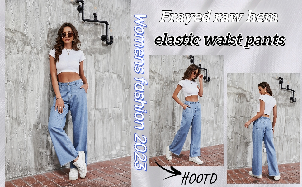 بنطال جينز LONGYIDA نسائي بخصر مطاطي وواسع الساق Y2k Boyfriend كاجوال فضفاض مناسب من قماش الدنيم للكاحل