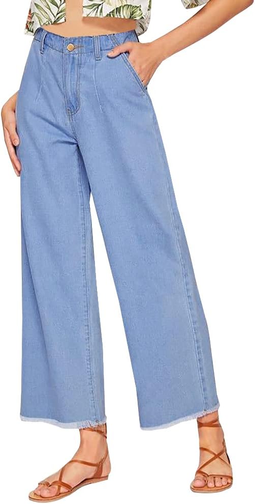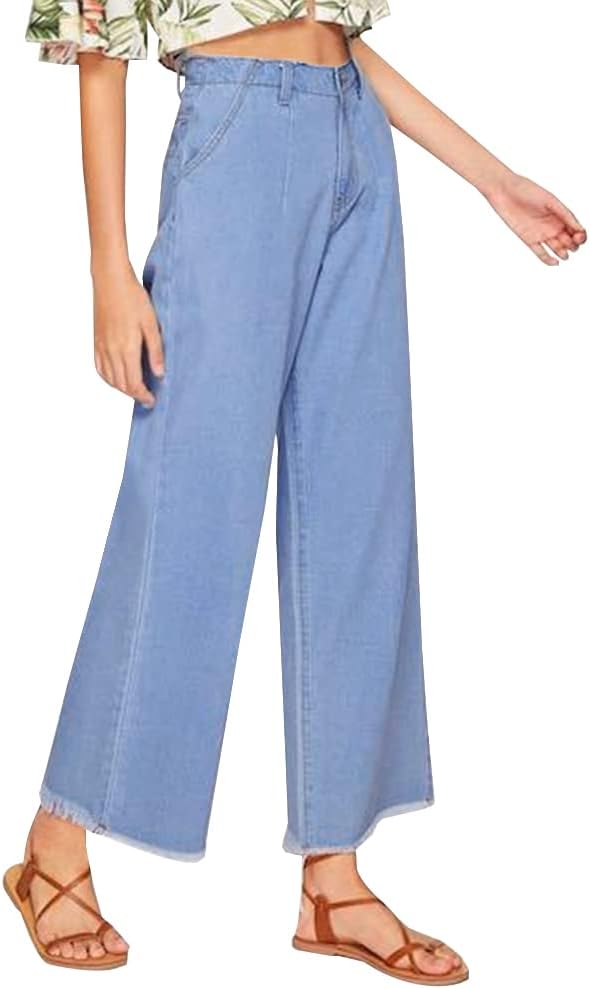 - جينز بوي فريند الكاجوال بطول الكاحل مع تصميم حاشية خام مهترئة يتبع الموضة الغربية العصرية