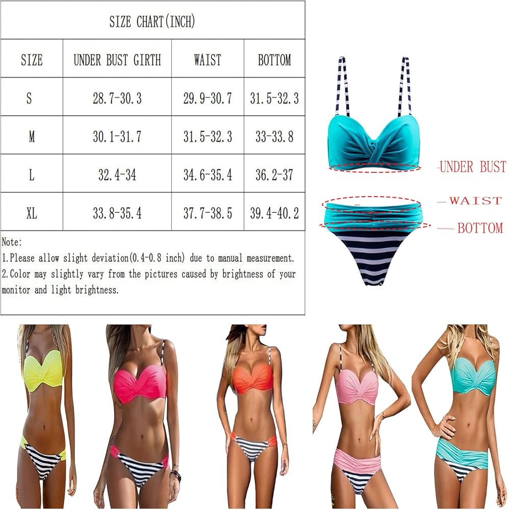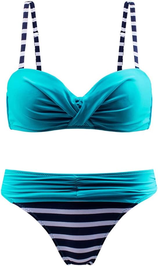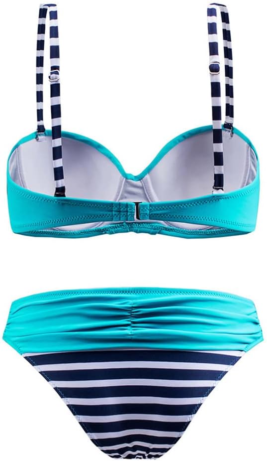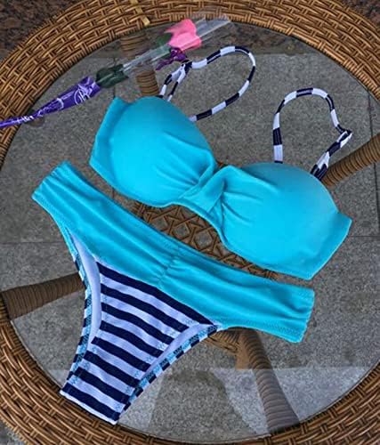 النمط: مجموعة بيكيني مكشكشة، بدون حمالات مع بطانة، جزء سفلي مخطط.