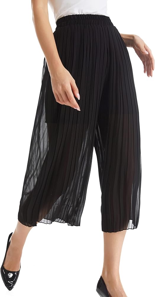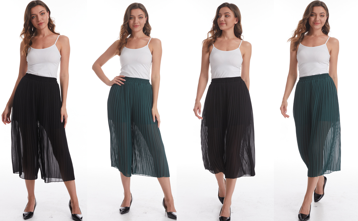- المميزات: سراويل واسعة الساق أنيقة كاجوال للسيدات، ذات بطانة، مع خصر مرتفع قليلاً، تصميم خصر مرن