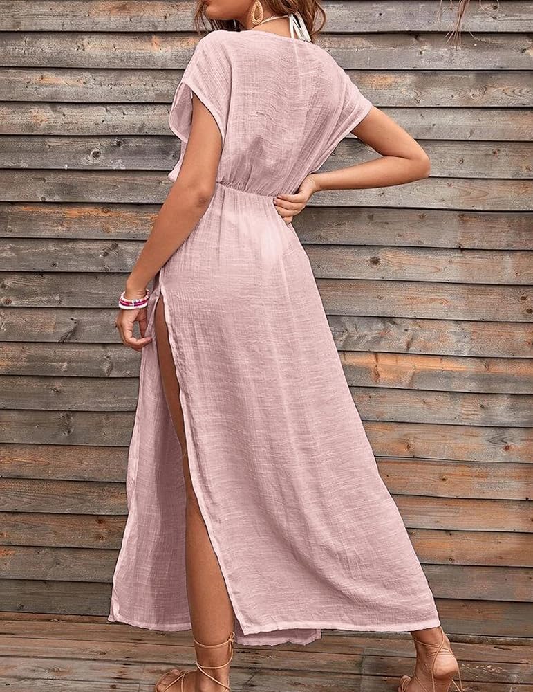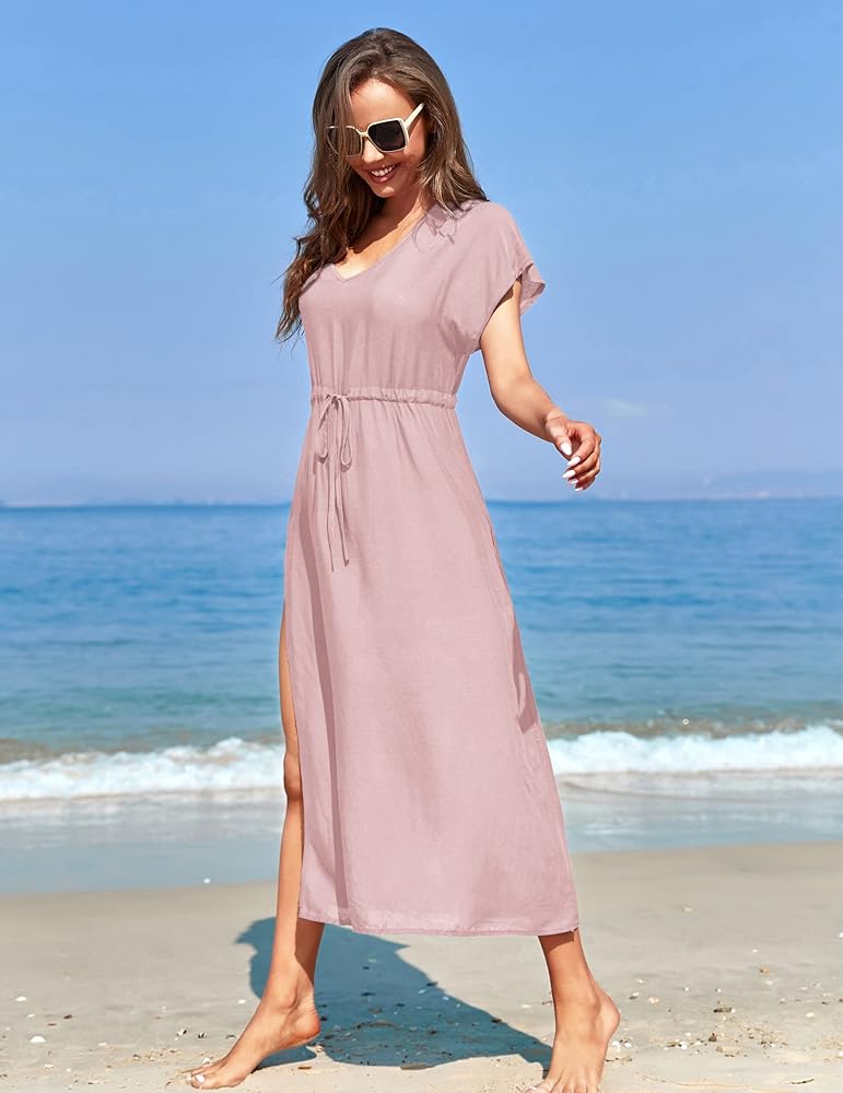 فستان Andeip النسائي للشاطئ كاجوال بفتحة جانبية، فستان طويل للسباحة، غطاء لباس السباحة
