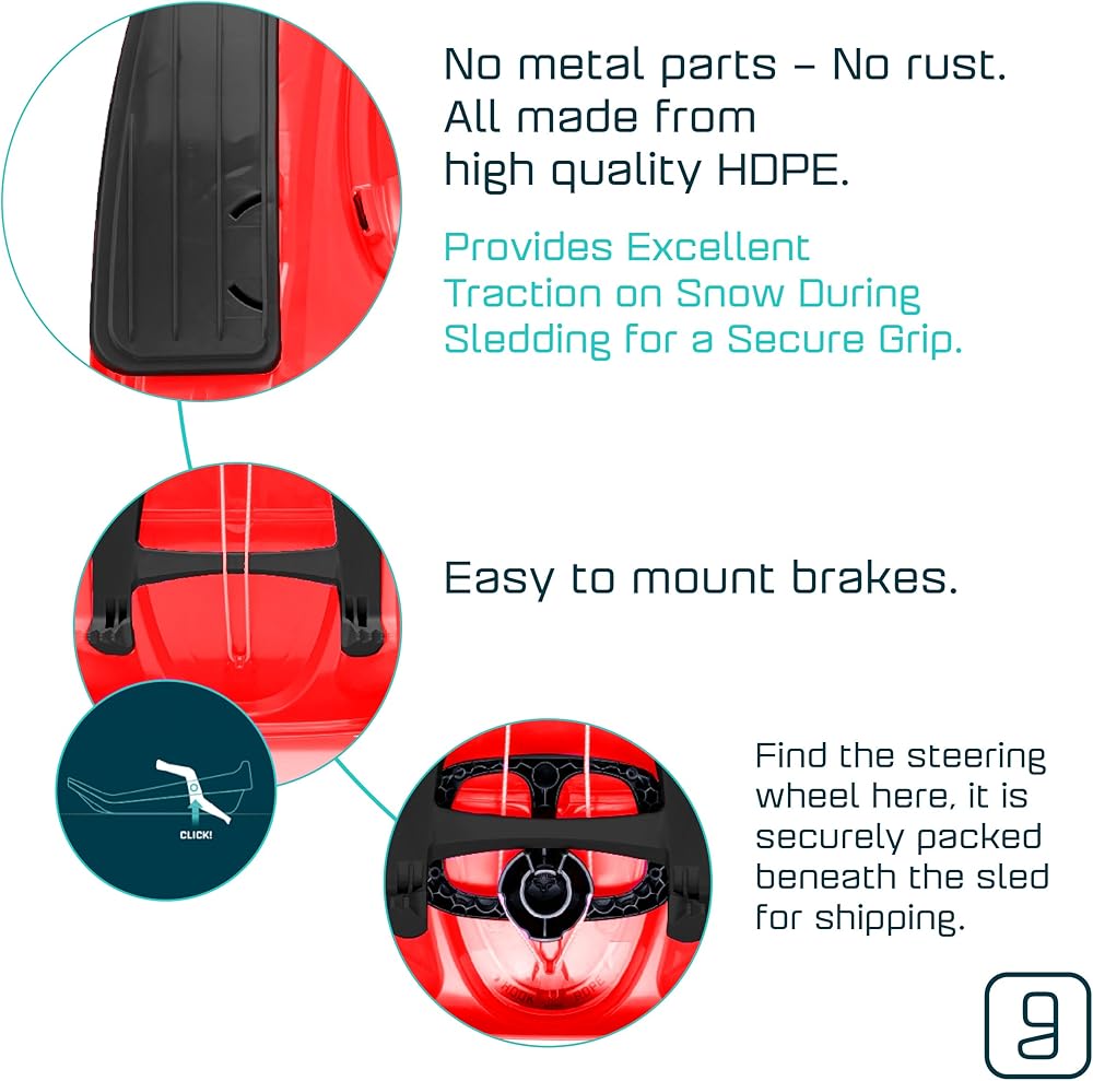 آمن للأطفال من جميع الأعمار 3 سنوات فما فوق: يمنع البلاستيك المضاد للانزلاق Gizmo Stratos الموجود على المقعد الأطفال من الانزلاق في الطقس الشتوي، كما توفر الفرامل وعجلة القيادة المتضمنة أقصى قدر من التحكم لمنع حدوث اصطدامات خطيرة.