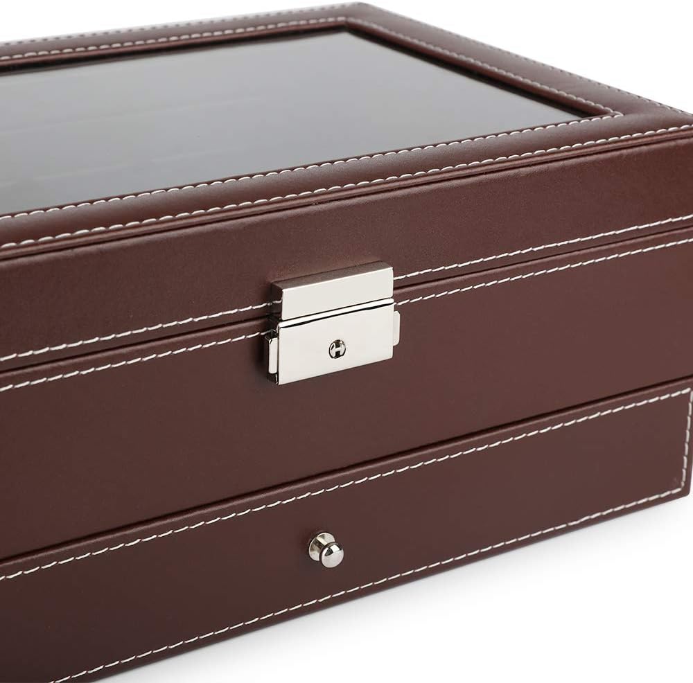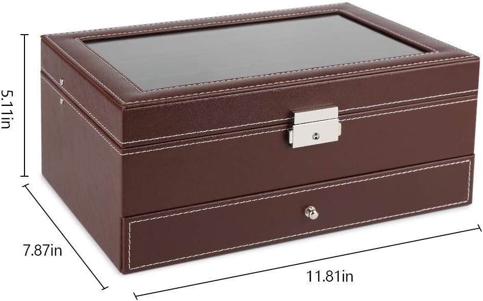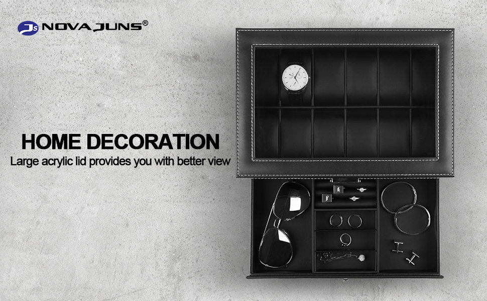 غطاء أكريليك كبير: يضمن الجزء العلوي من الأكريليك الشفاف لتخزين الساعة أنه يمكنك بسهولة اختيار ساعة تناسب ملابسك؛ إنها أيضًا طريقة ساحرة لعرض ساعاتك في خزانة ملابسك أو غرفة نومك.