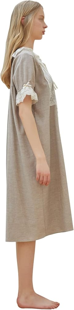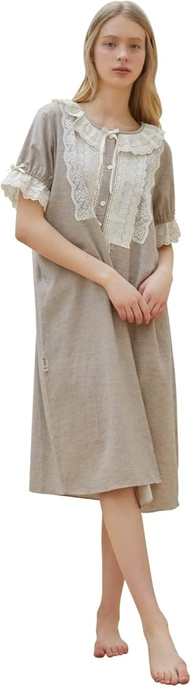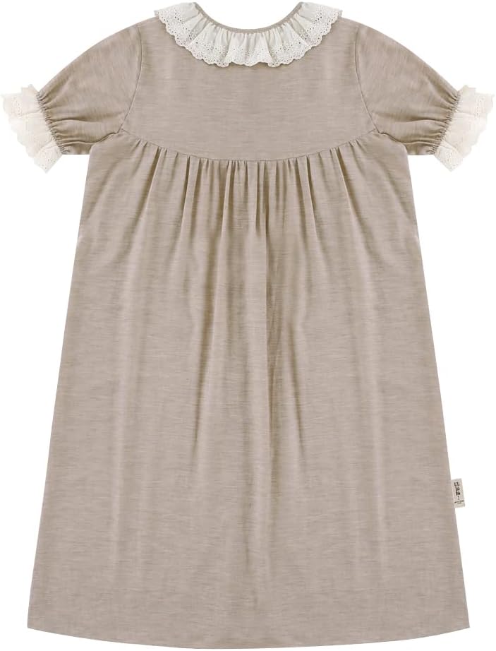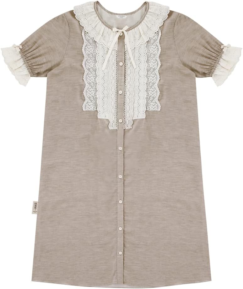 Design & Features: This is a girl-like one-piece pajama with a comfortable and soft fabric and lace decoration.Soft colors and rich cream lace decorations are used as points to create a romantic and lovely atmosphere. It's a short-sleeved dress that's comfortable to move around.
