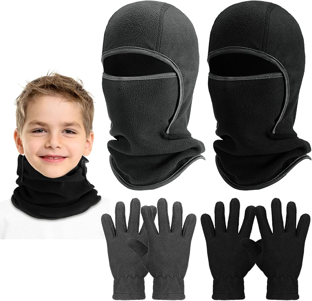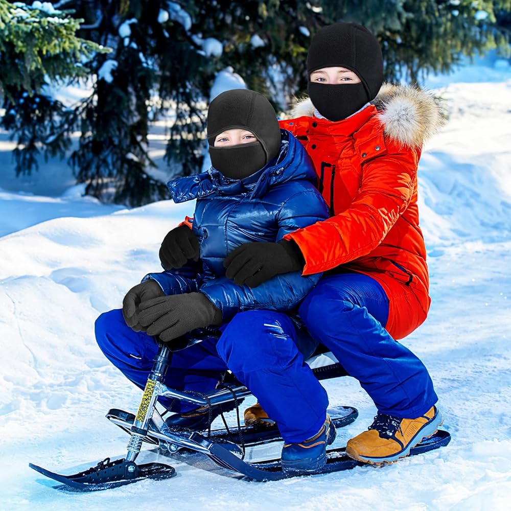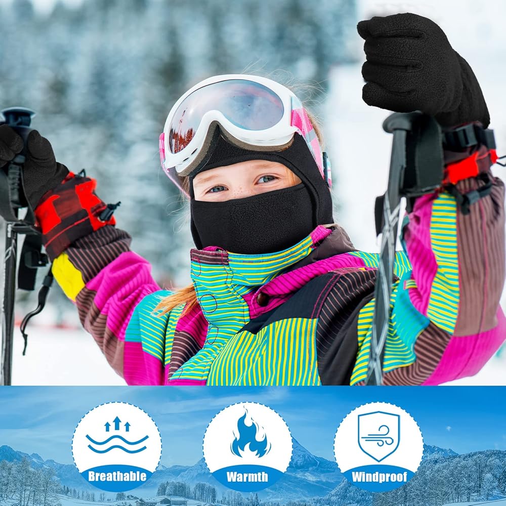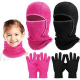 مجموعة الشتاء الدافئة: سوف تحصل على قطعتين من أقنعة التزلج بالاكلافا وزوجين من قفازات الأطفال، باللونين الأسود والأحمر الوردي، بما يكفي لتلبية احتياجات الاستخدام اليومية للأطفال في الطقس البارد، ويمكنك أيضًا مشاركتها مع جيرانك