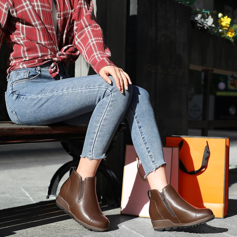 [استمتع بالطول والراحة] ارفع طولك دون التضحية بالراحة مع أحذية الكاحل ذات الكعب العالي هذه. يوفر النعل الداخلي الناعم والمرن توسيدًا ممتازًا لقدميك، مما يجعلها مثالية للمشي لمسافات طويلة أو الوقوف لفترات طويلة
