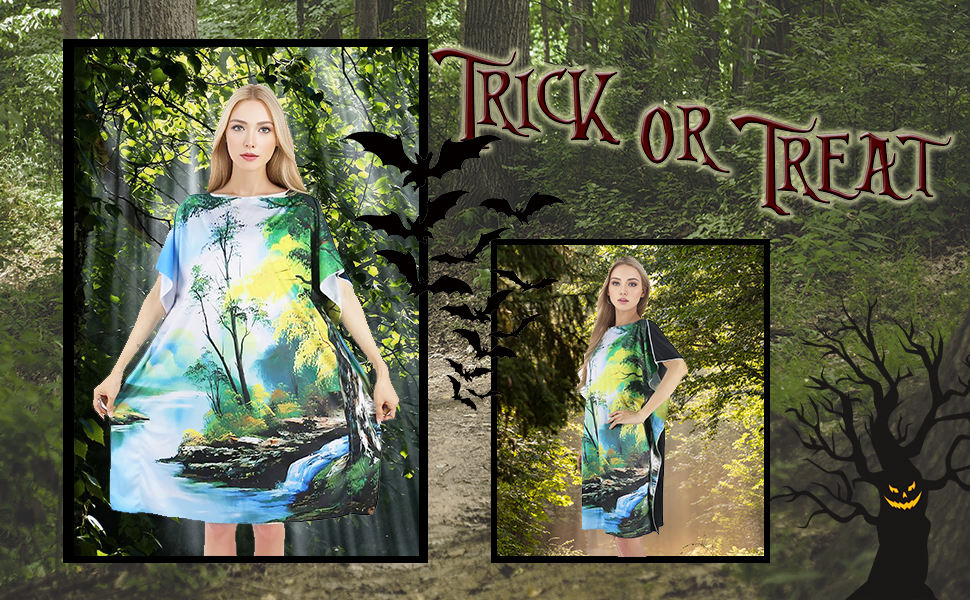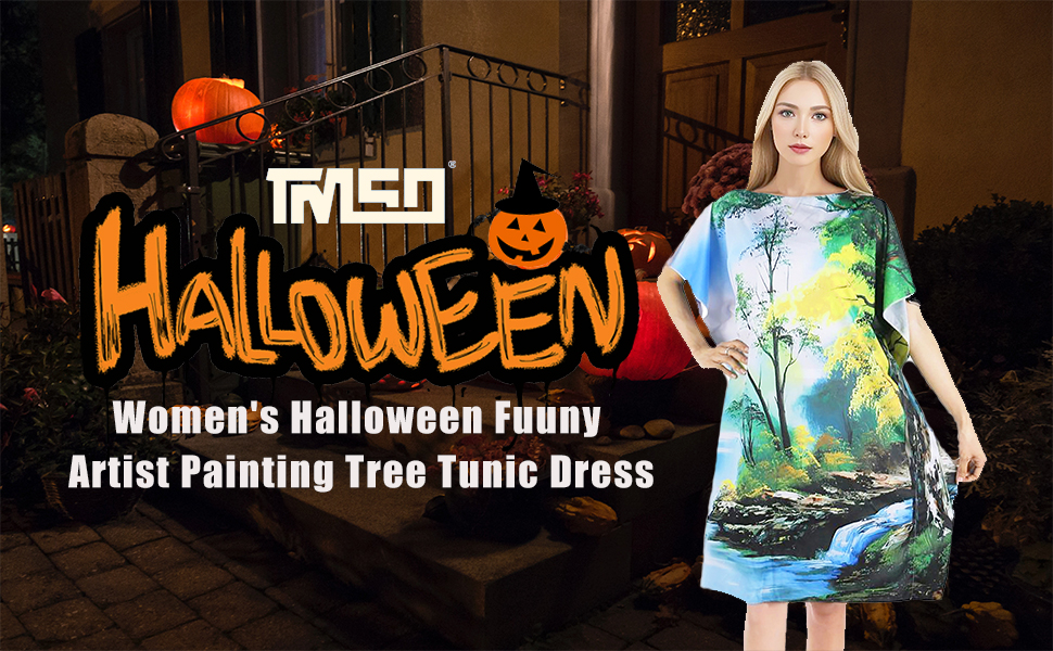 فستان تونيك الهالوين: يتميز فستان تونيك الهالوين بالكثير من المشاعر الجيدة التي تتدفق منه، لذلك قد تشعر بالسعادة قليلاً عند ارتدائه. تأكد من الاقتران مع الرسام الملتحي المفضل لديك لإكمال المظهر!