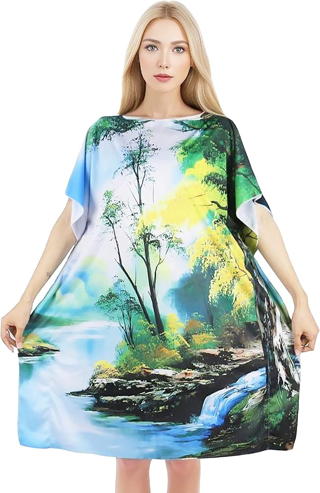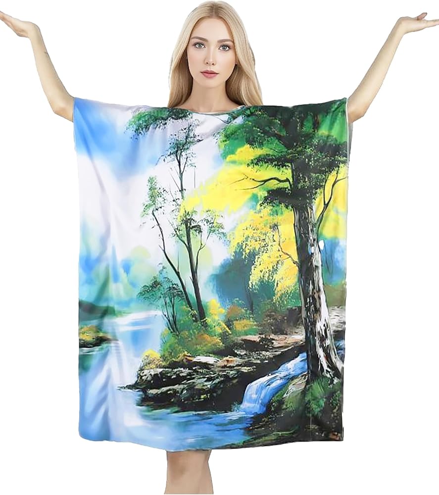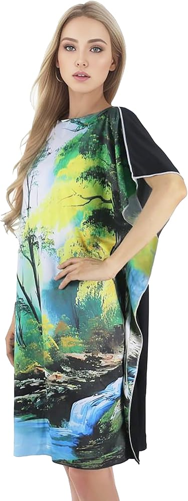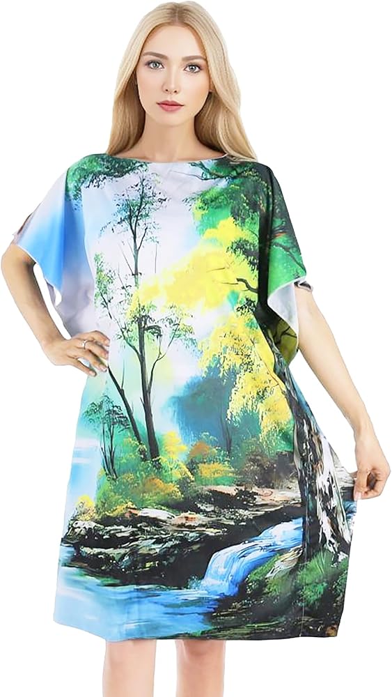 تصميم شجرة الرسم: يتميز الجزء الأمامي من الفستان بنمط التونيك ببعض الأشجار المميزة في المقدمة، إلى جانب سحابة لطيفة ونهر لطيف في الأسفل.