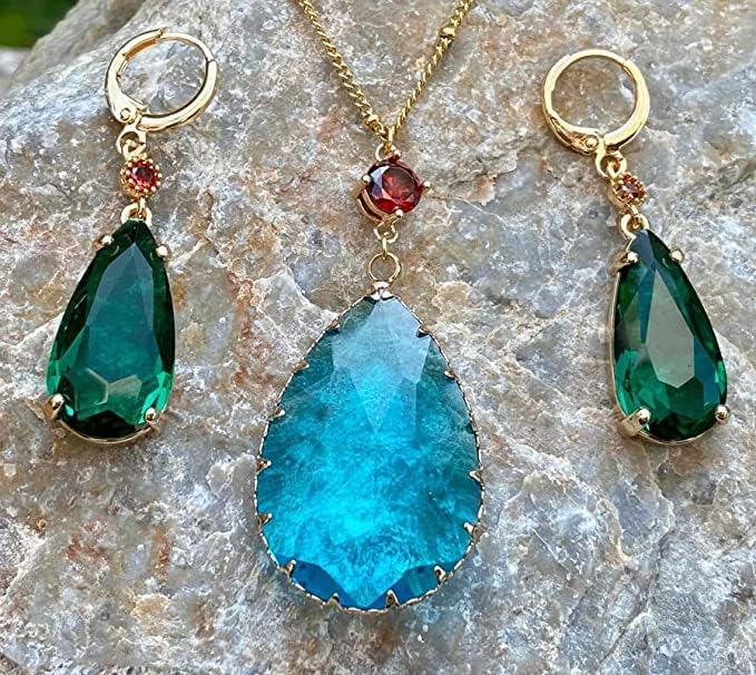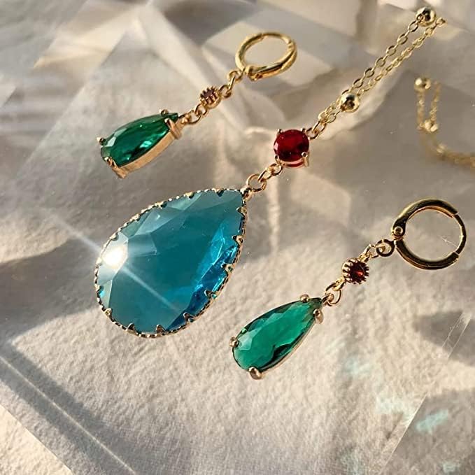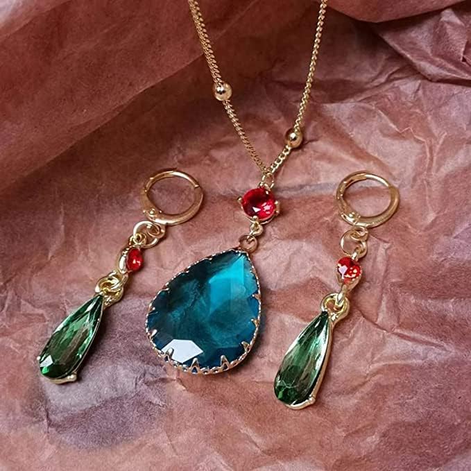 مجموعة أقراط وقلادة من Howls Green Water في مجوهرات Howls Moving Castle - الرسوم المتحركة اليابانية المفضلة المستخدمة كإكسسوارات تنكرية أو هدايا مجوهرات للحفلات التنكرية والنساء والرجال ومحبي الرسوم المتحركة.