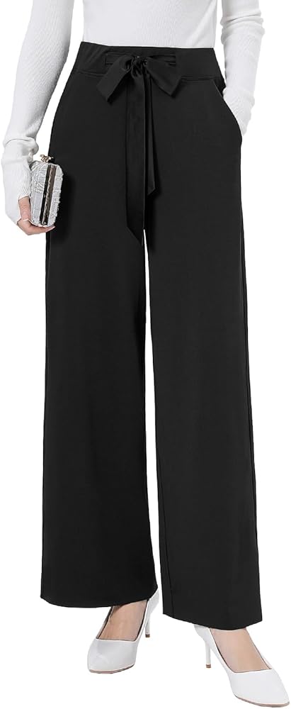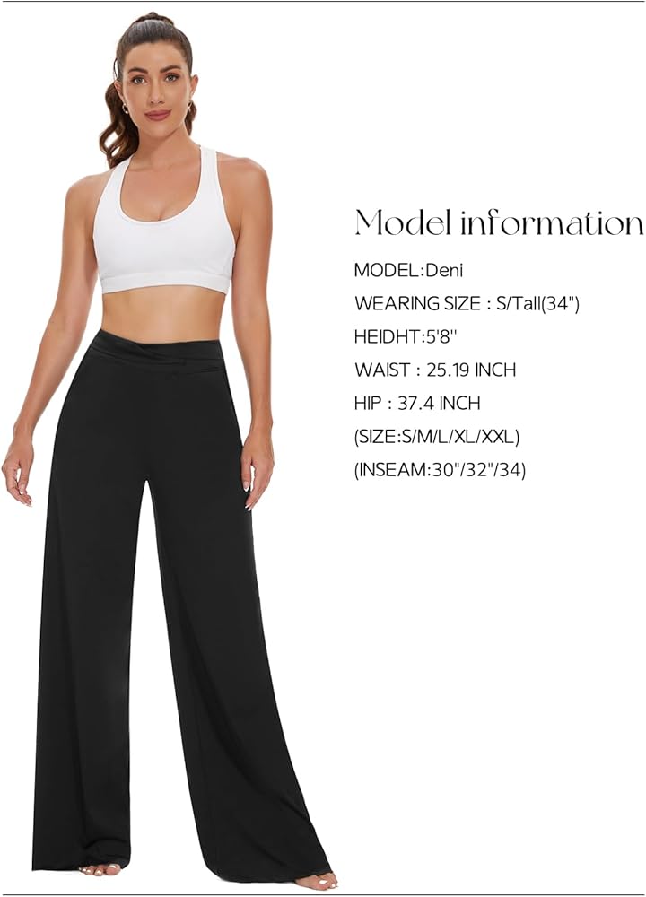 Stylish & Functionality: Waist of wide leg yoga pants features a tie design, allowing for flexible adjustment. Stretch waist and plus elegant bow design of palazzo pants creates a sophisticated and ultra-stylish ensemble.Two outside pockets can be put for cellphone or any essentials.