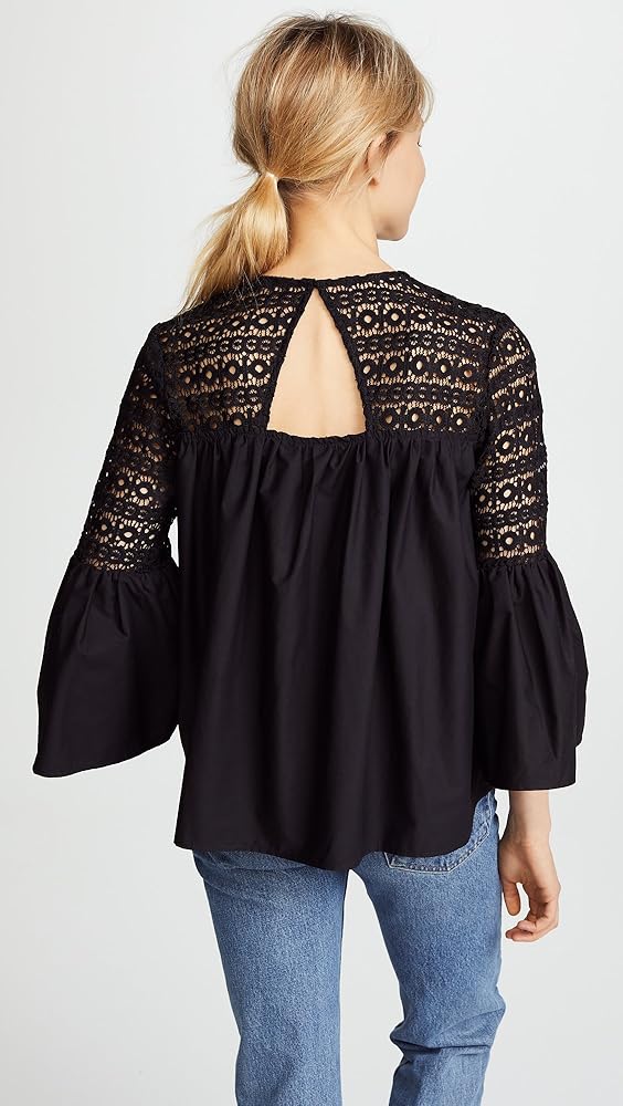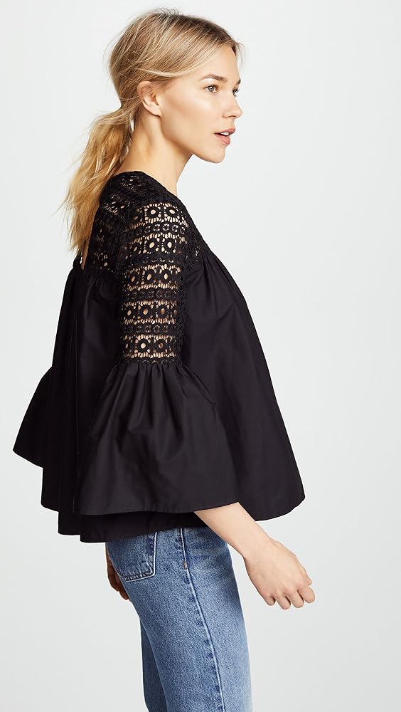يشكل الكروشيه الساحر النير الشفاف وألواح الأكمام لهذه البلوزة الوردية التي لا نهاية لها.
