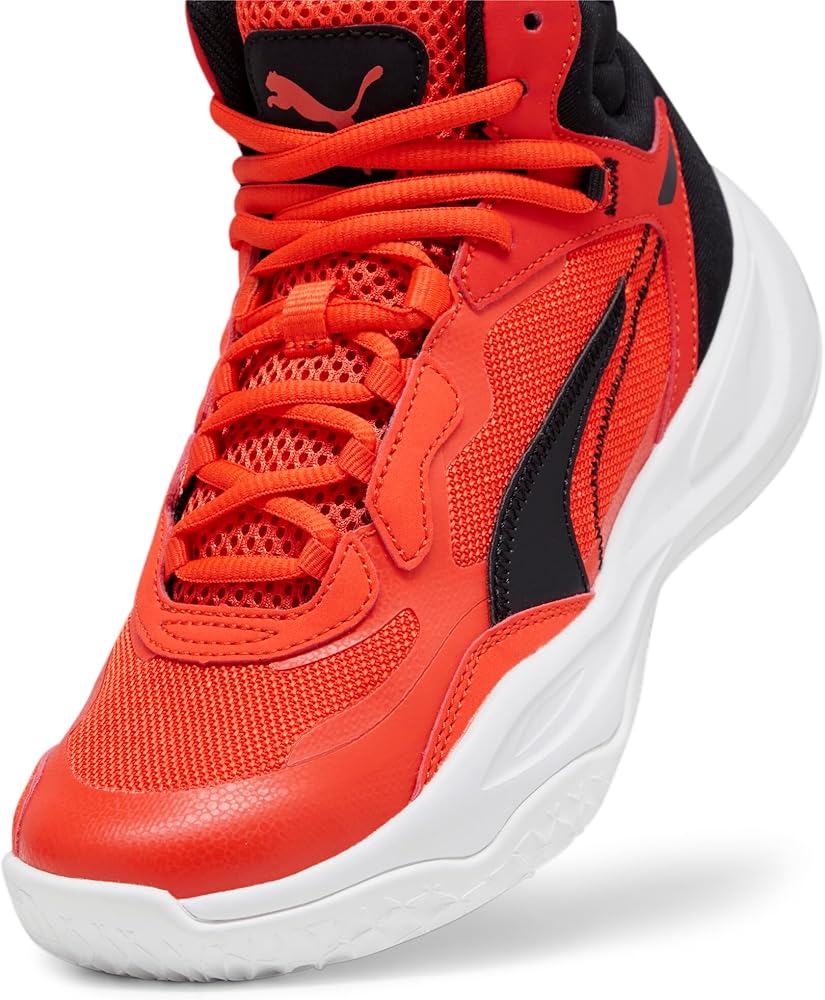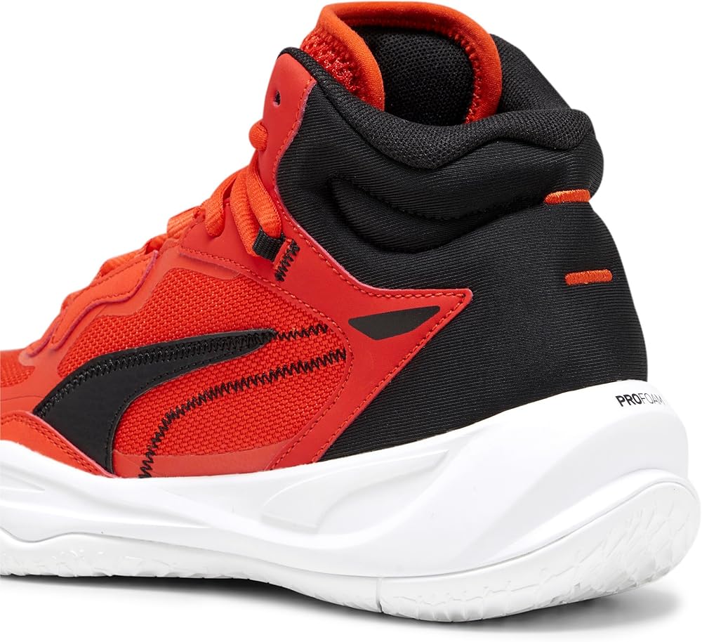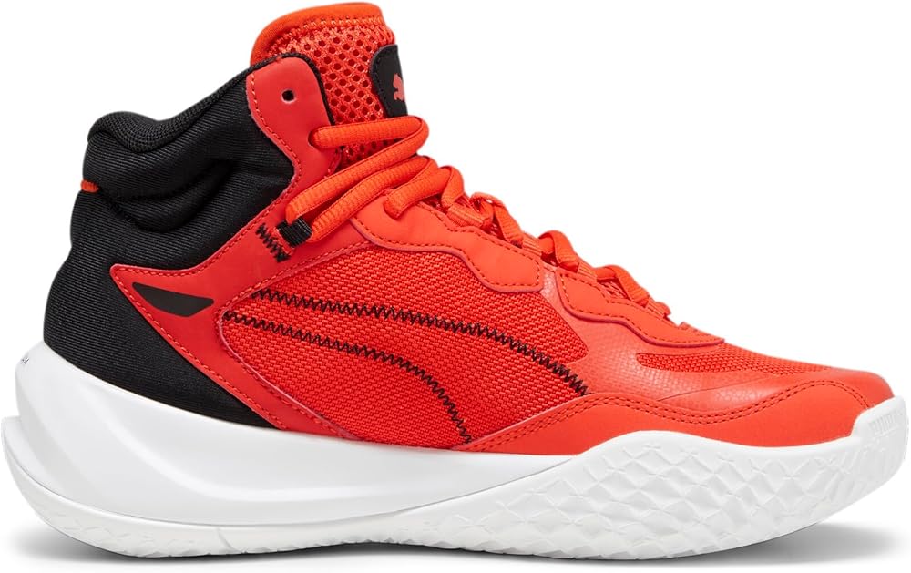 The Playmaker Pro pulls in DNA from the PUMA Hoops line, packaging midsole branding and lifestyle overlays all in a performance package playable at the highest level. The mid version brings the collar height higher around the ankle evolving the low version.