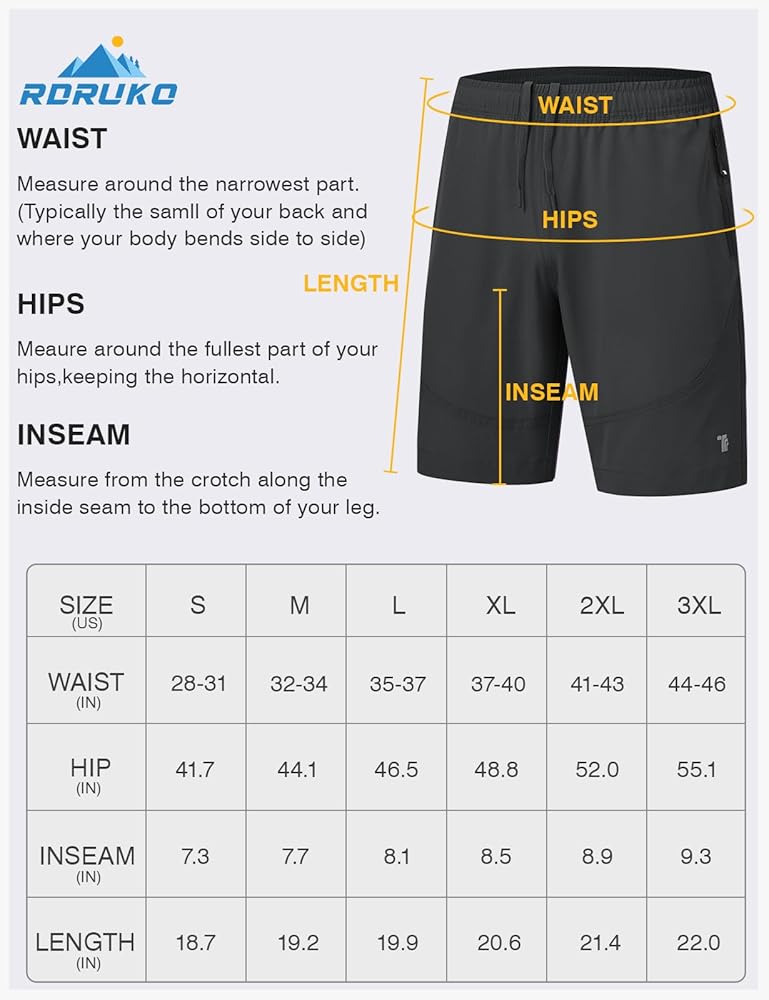 - شورت Rdruko الرياضي الرجالي مناسب للمشي لمسافات طويلة والجري والتمرين والتدريب وكرة السلة والسفر والتخييم والركض والرياضة والارتداء اليومي.