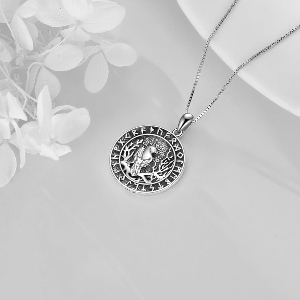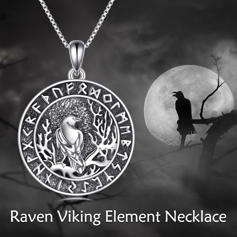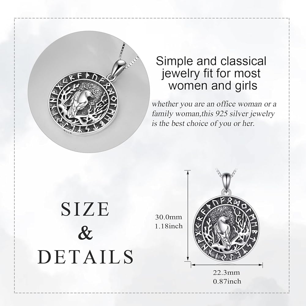 【مادة قلادة رافين 】: مجوهرات الغراب هذه مصنوعة من الفضة الإسترلينية 925، لمسة نهائية عالية اللمعان ومقاومة للتشوه، قلادة الفايكنج هذه لن يتغير لونها وستصبح داكنة عند ارتدائها مدى الحياة.