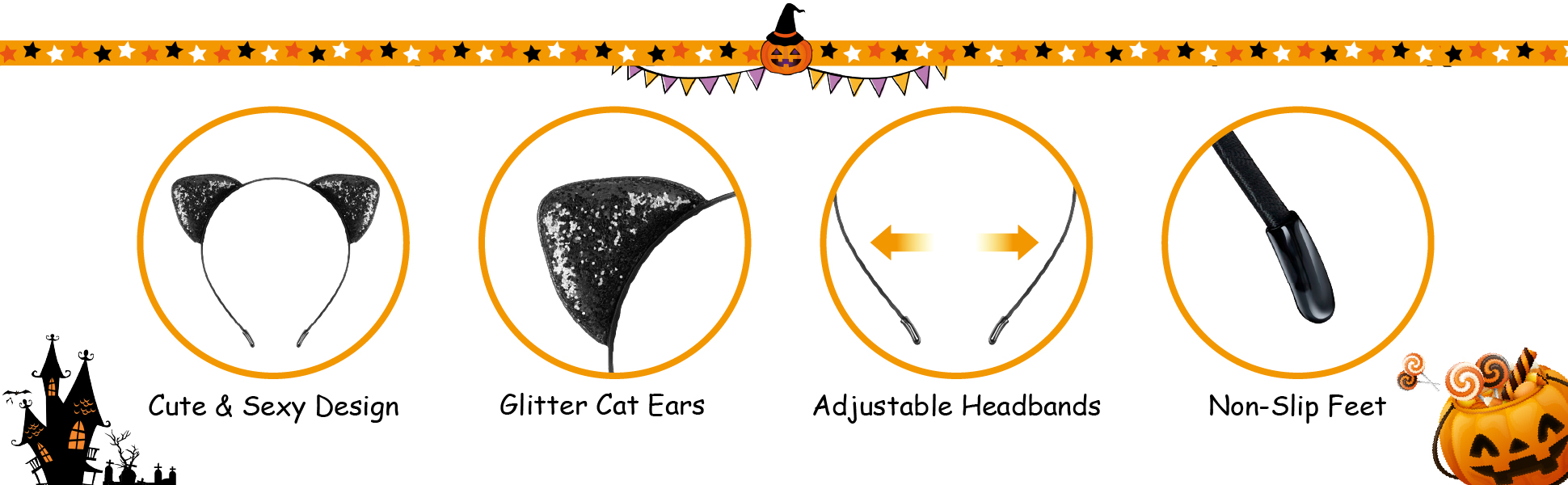 A Complete Set: This package includes 1 black glitter cat ears headband, 1 cat mask, and 1 choker with a bell, perfect for women and girls to dress up, which will make you outstanding at parties