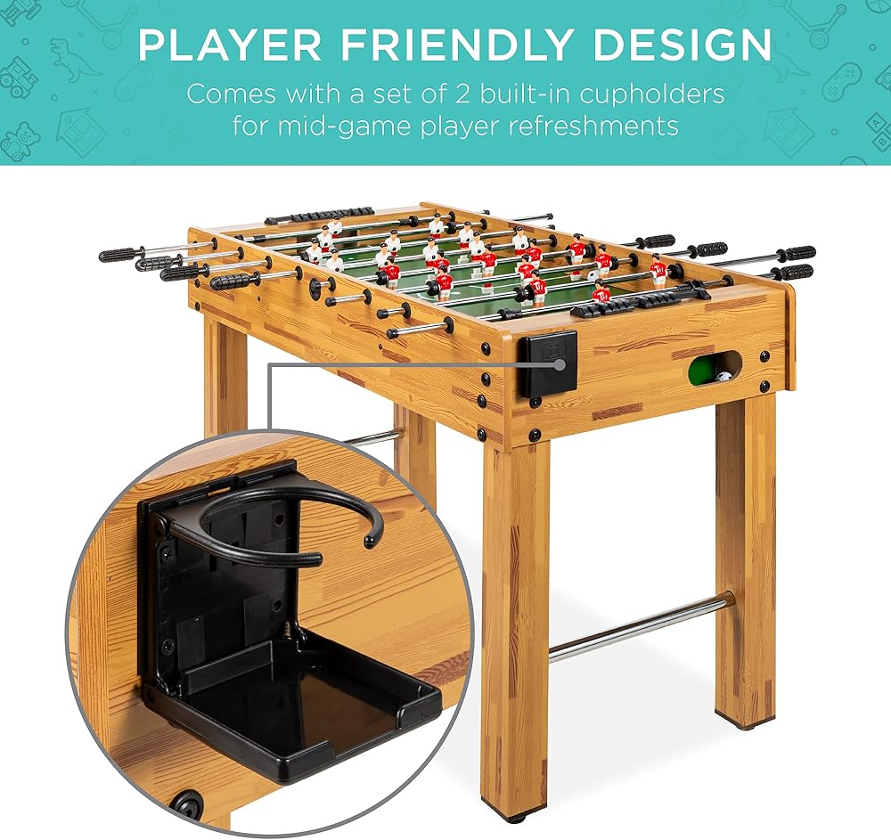 أضف لمسة كلاسيكية إلى منزلك واستمتع ببعض المنافسة الودية. القطعة المركزية المثالية لأي غرفة ألعاب أو ممر أو كهف رجل، طاولة كرة القدم هذه مقاس 48 انش ستجعل الأطفال والكبار يركل الأهداف لساعات سعيًا للحصول على لقب بطل كرة القدم! حتى أنها تحتوي على حوامل أكواب مدمجة، حتى يتمكن اللاعبون من الاحتفاظ بمشروب قريب عندما يبدأ العرق في السقوط. للترفيه في نصف الوقت والمرح العائلي الشامل، ستجعل طاولة كرة القدم هذه الجميع يصرخون!
