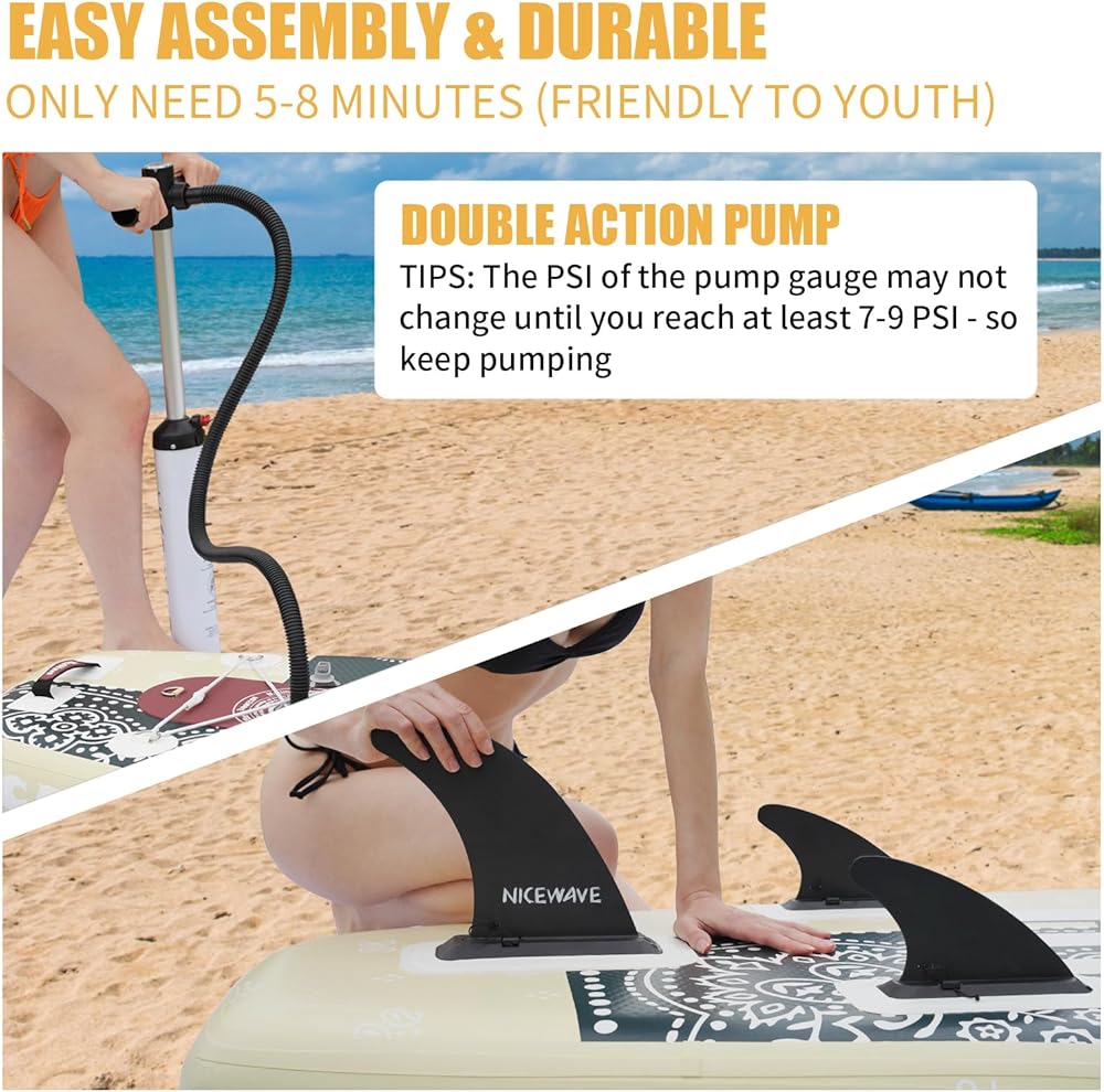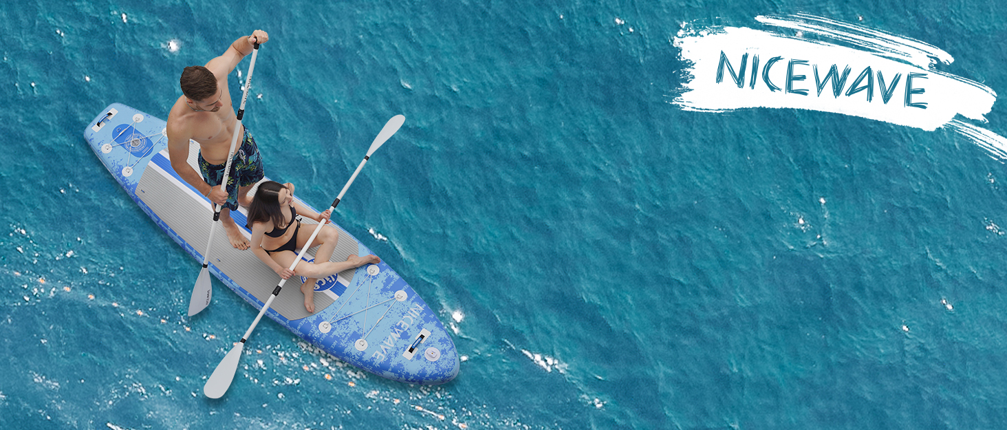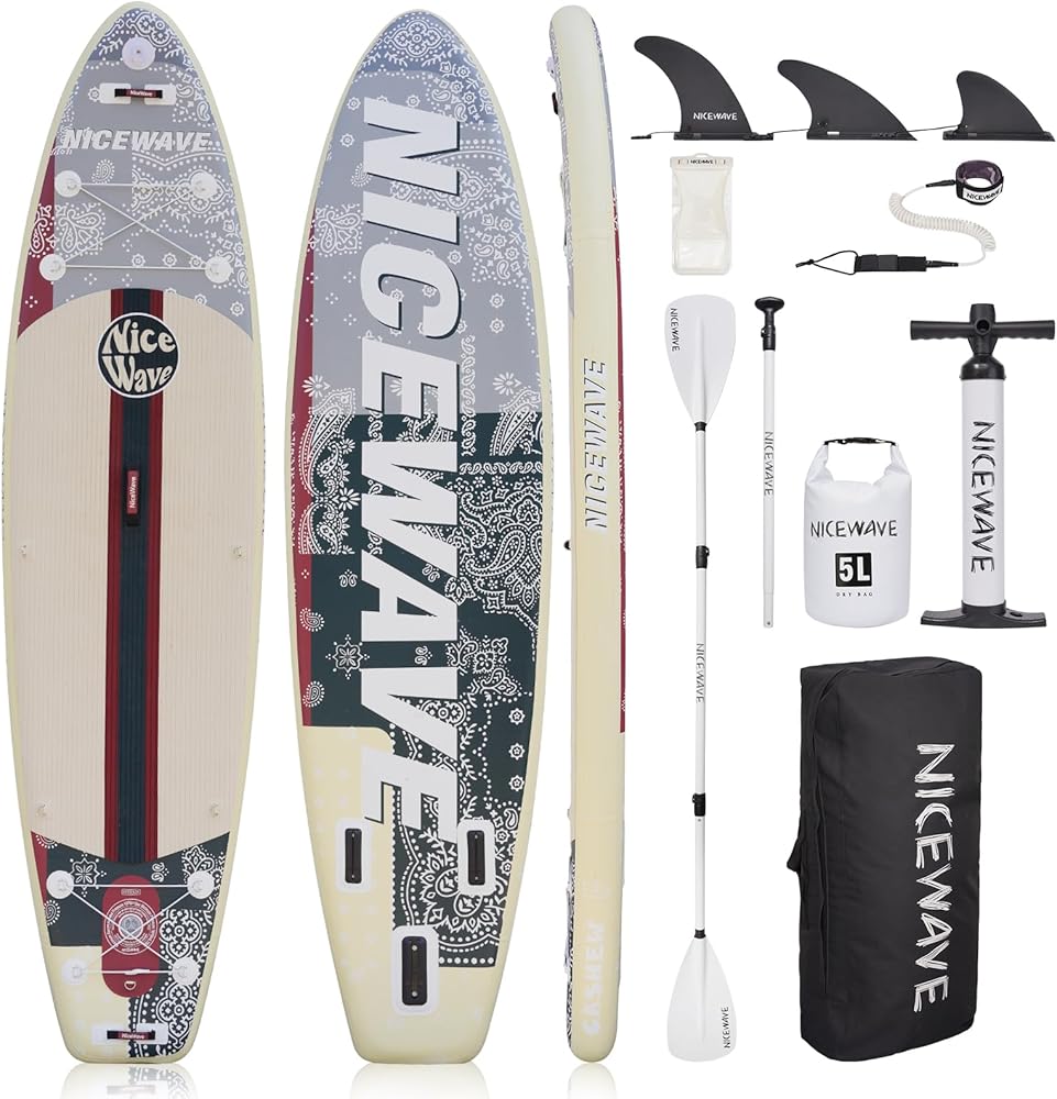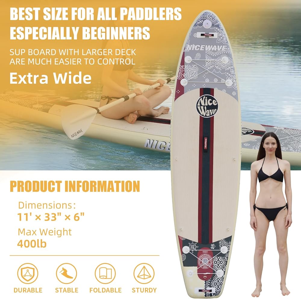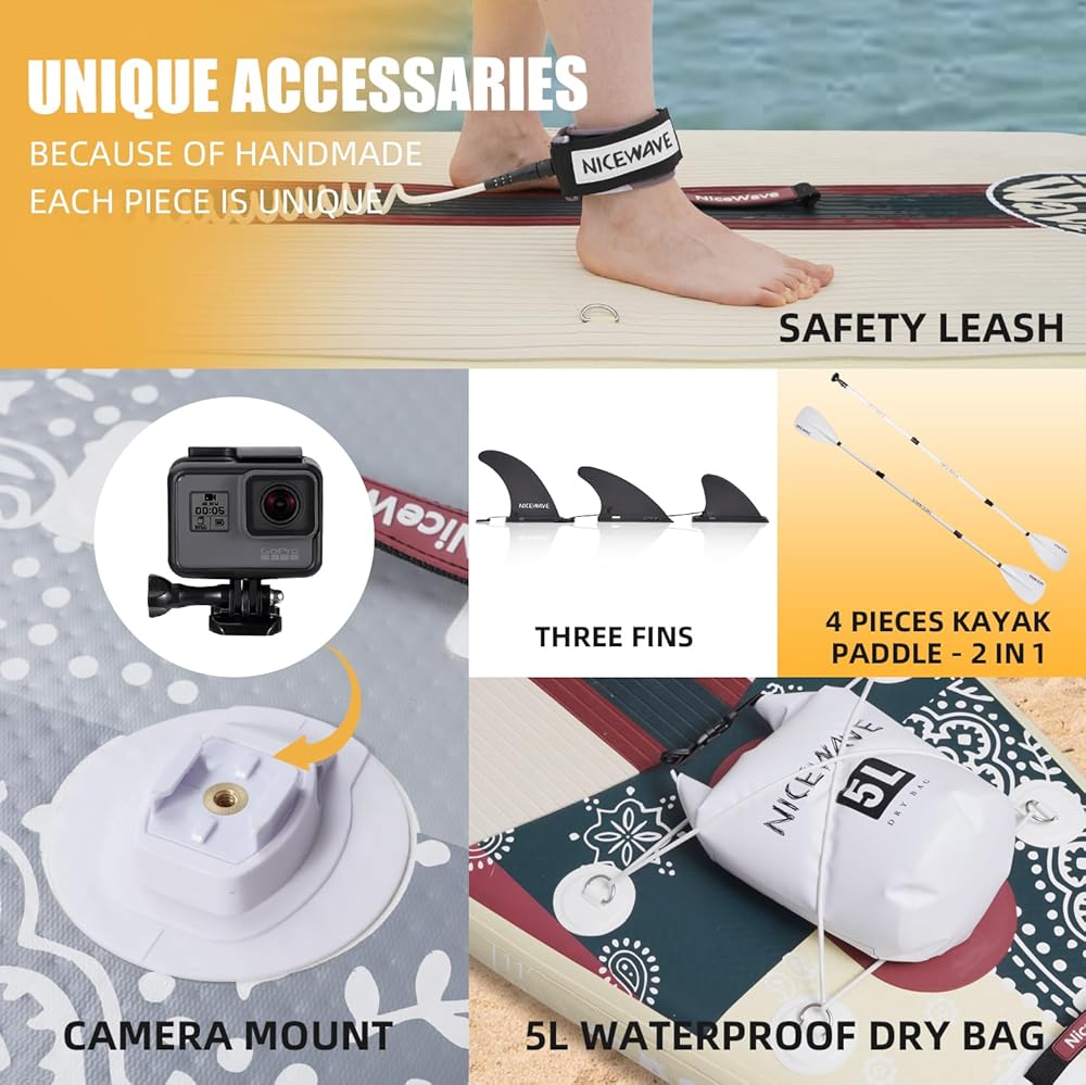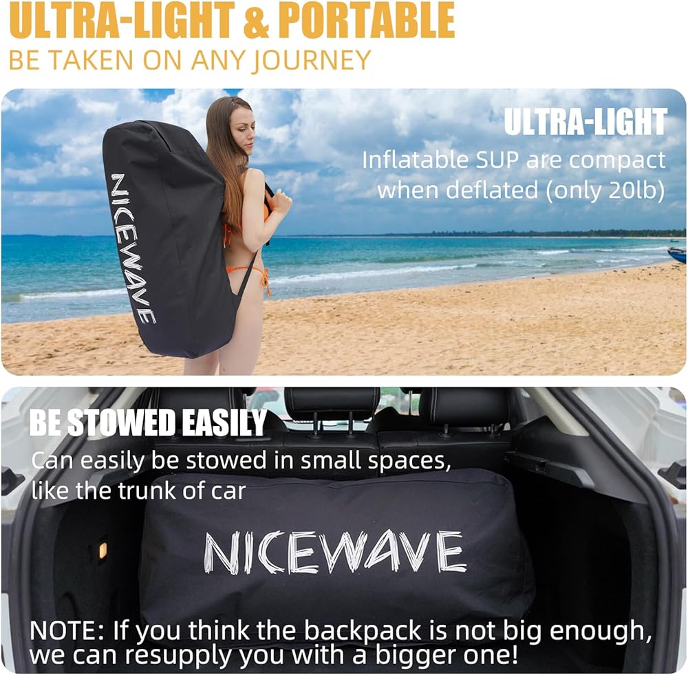 ألواح تجديف واقفة عريضة للغاية قابلة للنفخ من NiceWave للبالغين/الشباب مع حامل كاميرا (10'6"/11' ألواح تجديف SUP خفيفة للغاية) مع ملحقات ISUP وحقيبة ظهر ممتازة