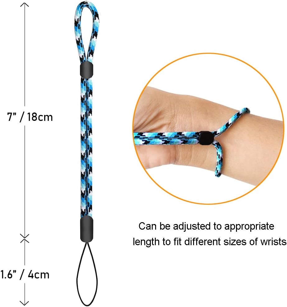 • يبلغ الطول الإجمالي لحبل المعصم 9.5 بوصة (24 سم) مع شريحة أمان قابلة للتعديل.