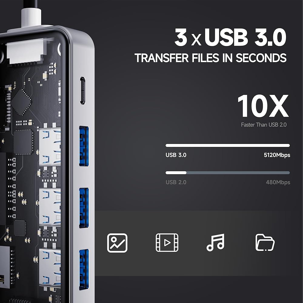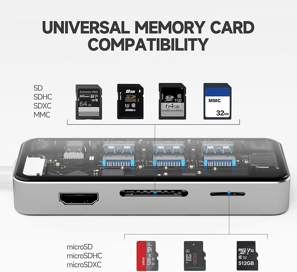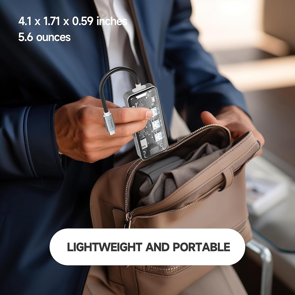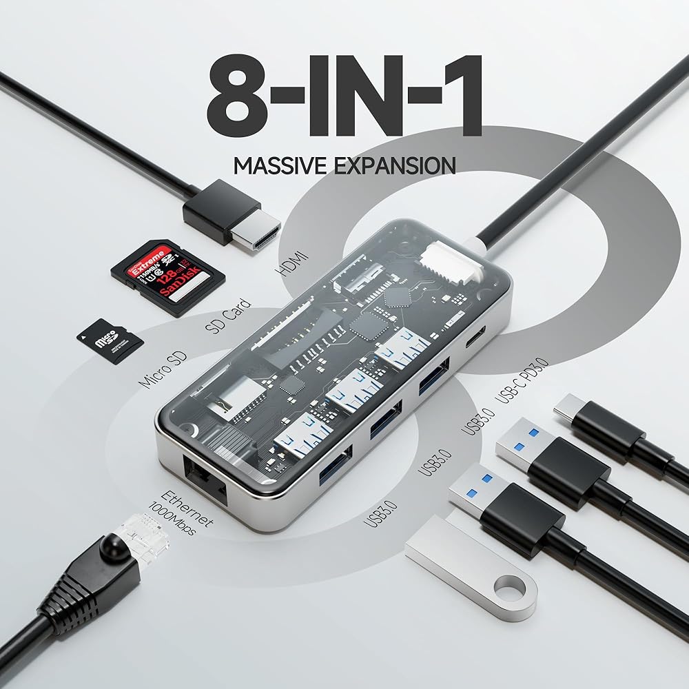 توسيع هائل: مزود بمنفذ USB-C و3 منافذ بيانات USB-A ومنفذ HDMI ومنفذ ايثرنت وقارئ بطاقات microSD/SD، مما يمنحك مجموعة مذهلة من الوظائف - كل ذلك من منفذ USB-C واحد.