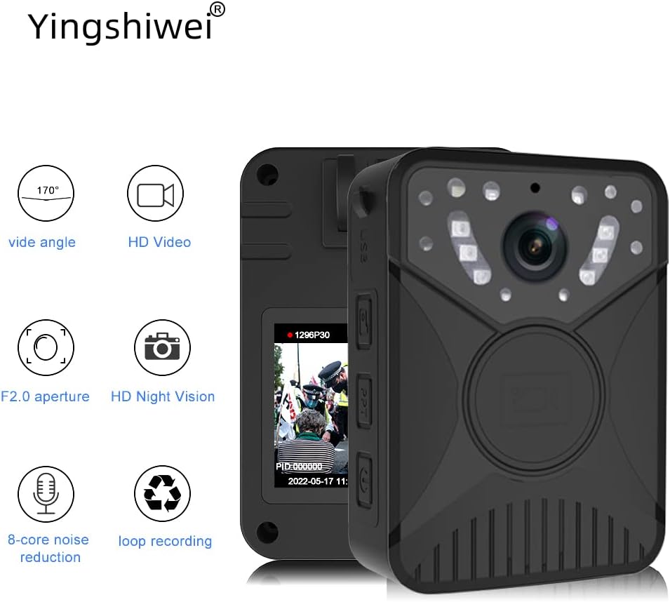 كاميرا Yingshiwei كاميرا الجسم لمدة 10 ساعات للرؤية الليلية للبطارية، مقاومة للماء، كاميرا الجسم مع تسجيل صوتي يمكن ارتداؤها 128 جيجا 2.0 بوصة LCD للرؤية الليلية بالأشعة تحت الحمراء
