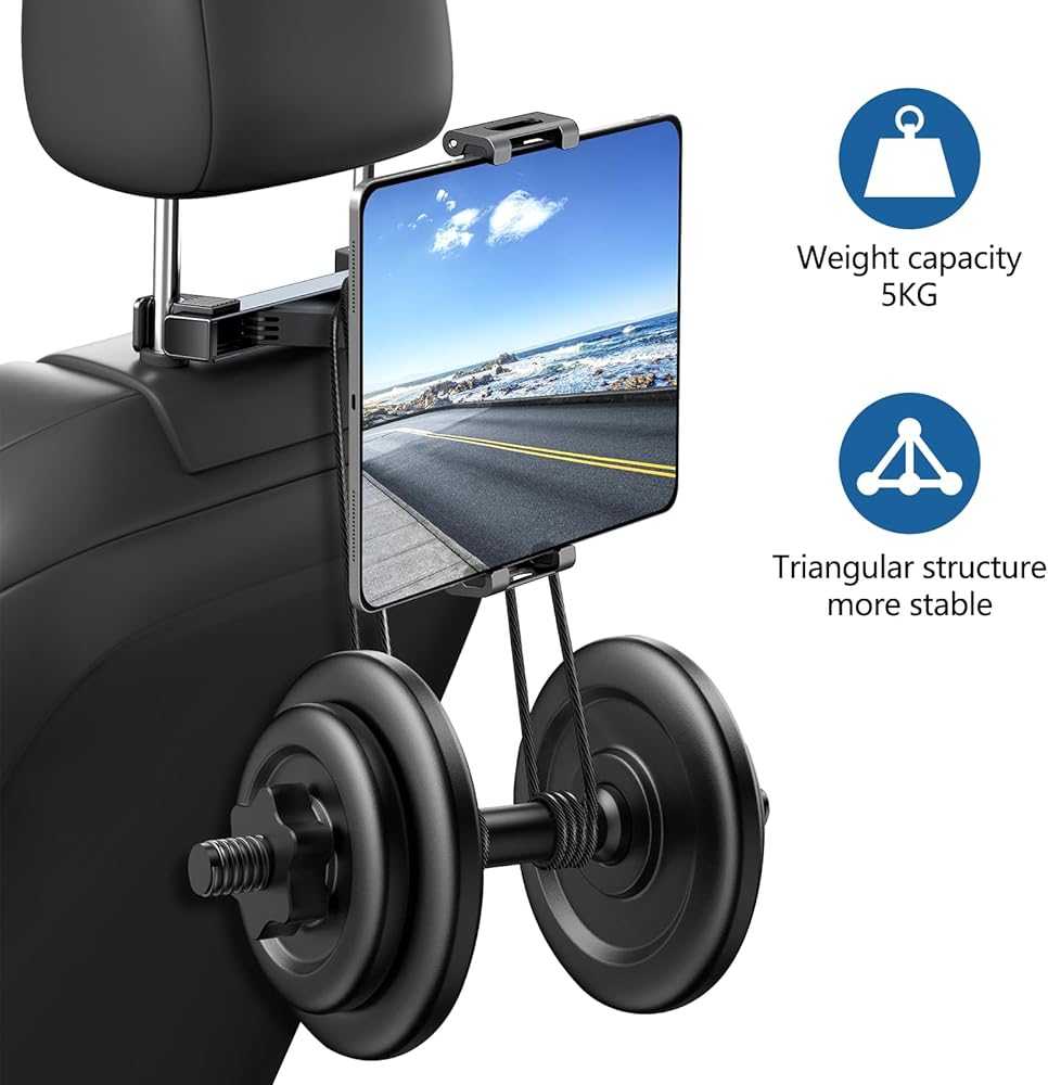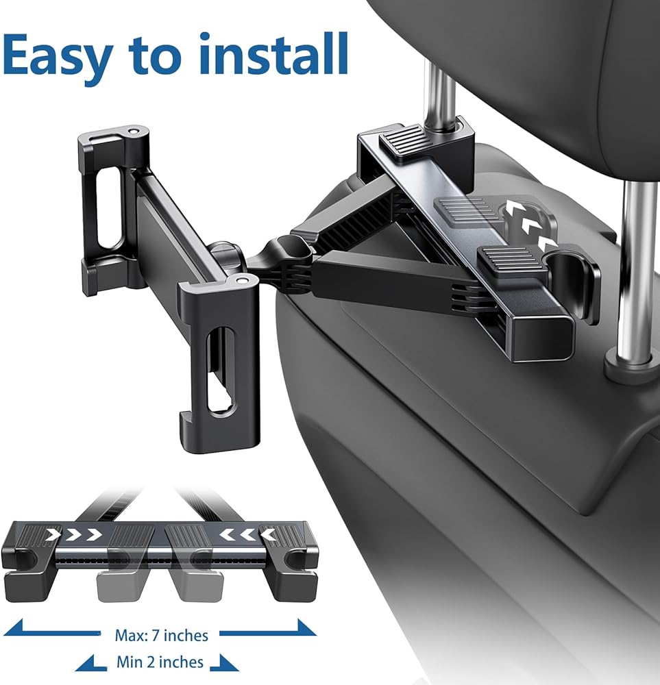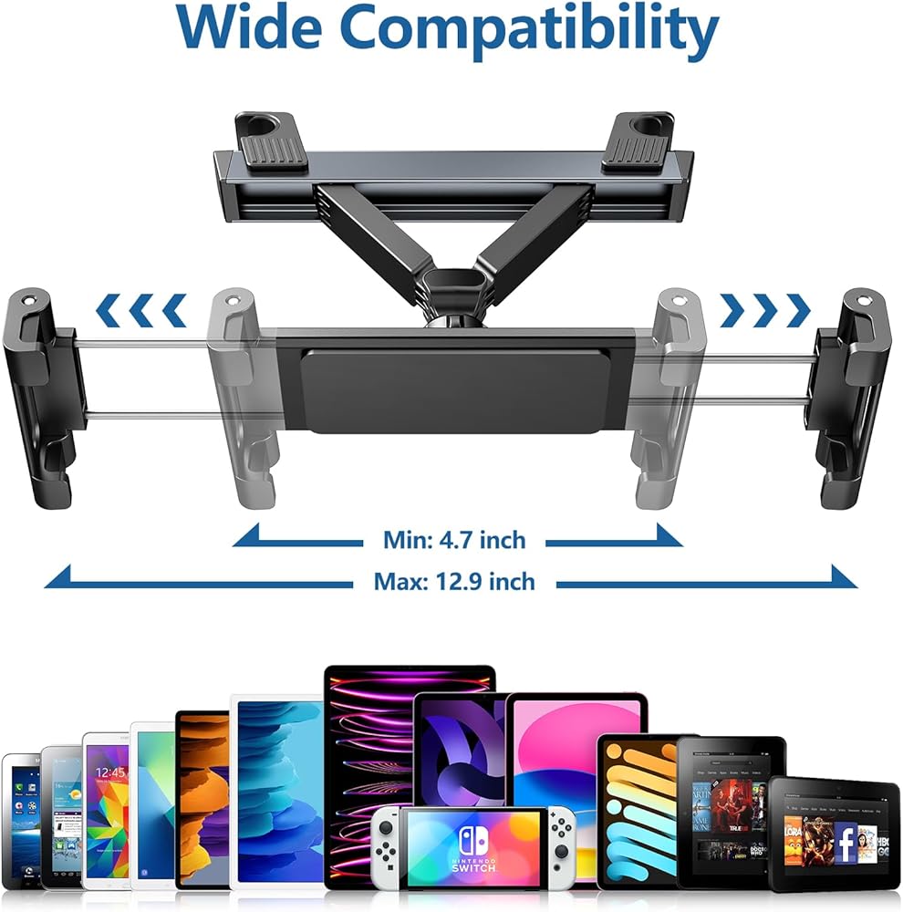حامل iPad اللوحي Uniwit لمسند رأس المقعد الخلفي للسيارة - حامل الكمبيوتر اللوحي الأساسي لرحلة السيارة للأطفال، متوافق مع الكمبيوتر اللوحي/iPad، iPhone/Samsung Tab/Fire HD/Switch، وغيرها من الأجهزة مقاس 4.7 بوصة - 12.9 بوصة