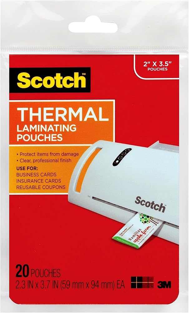 تعمل أكياس التصفيح الحراري من سكوتش على حماية المستندات التي تتعامل معها بشكل متكرر. أكياس التصفيح الحراري هذه بسمك 5 مل مخصصة للاستخدام مع آلات التصفيح الحرارية. الحقائب شفافة للسماح بظهور المعلومات المهمة من خلالها. مقاس 3.5 × 5 بوصة