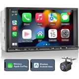 Android Car Stereo Double Din Wireless CarPlay & Android Auto, 7 Inch Touchscreen Car Radio with Split Screen, WiFi, DSP, AHD Backup Camera, Subwoofer, USB/AUX/SWC/FM (2G+32G)