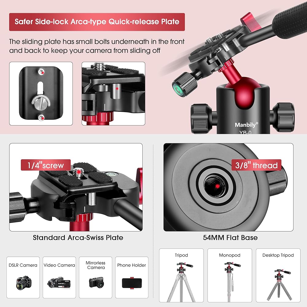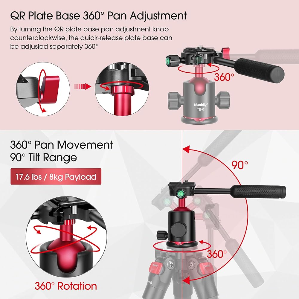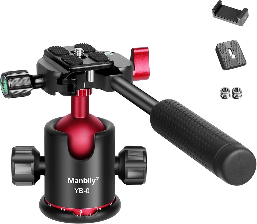 🎥[WHAT YOU GET] YB-0 Tripod Ball Head *1 , Extra Quick Release Plate *1 , Extra Screw Converter *2 , Extra Phone Clip *1 , User Manual *1. 7/24-Hour Customer After-sales Support from Manbily. If you have any questions, please feel free to contact us. (Note: Camera and tripod are NOT included.)