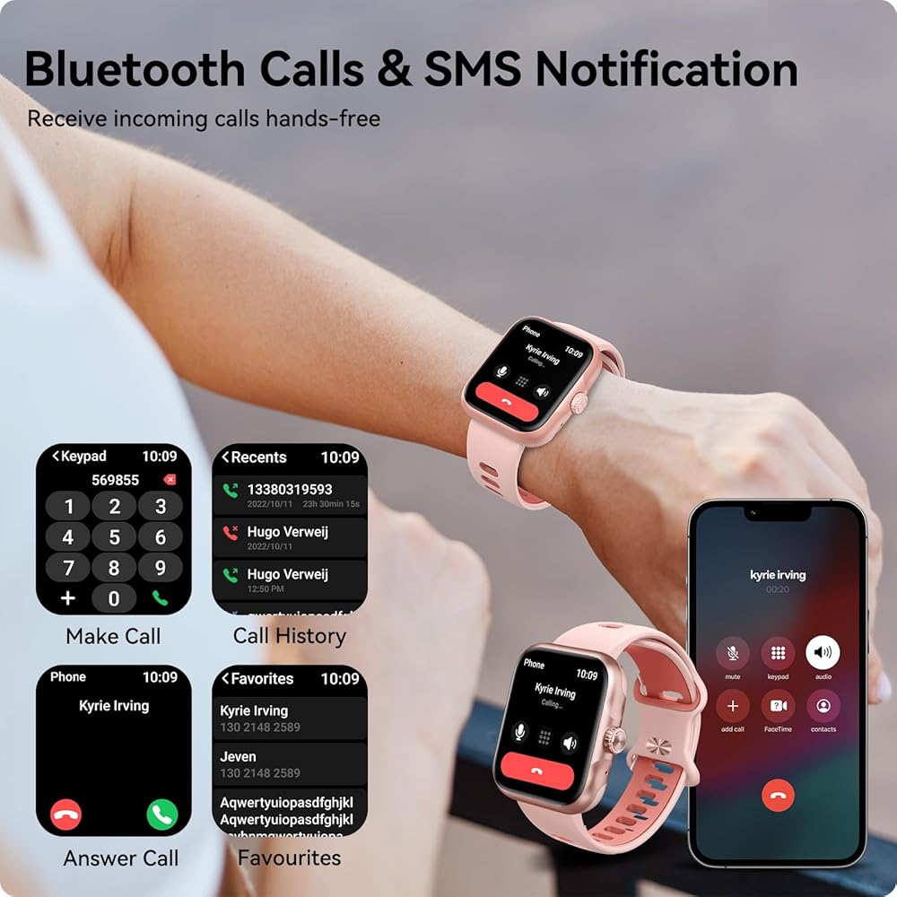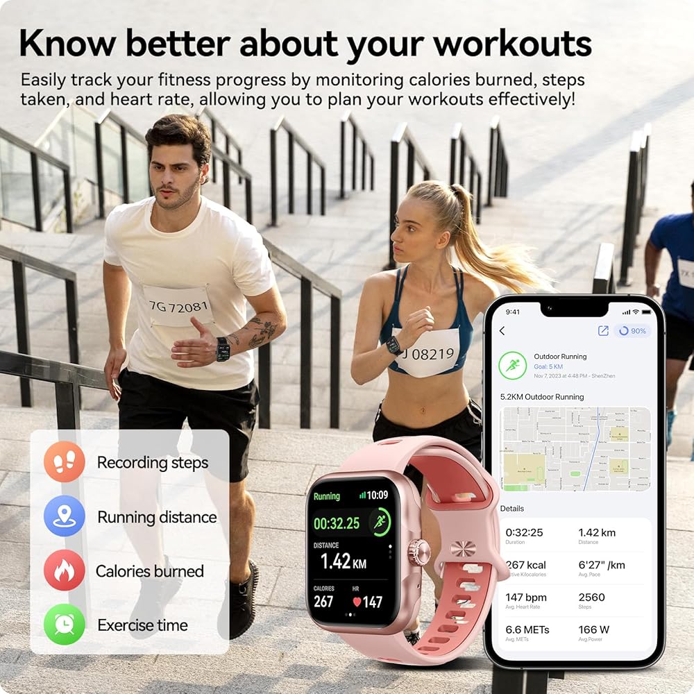Stay Effortlessly Linked On The Go: This smartwatch puts the convenience of your phone on your wrist. Receive incoming calls, messages, and app notifications directly to your device. With smooth integration for both iOS and Android devices, you can play music, make calls, remind texts, and more, no matter where you are. Stay connected and in control with ease.
