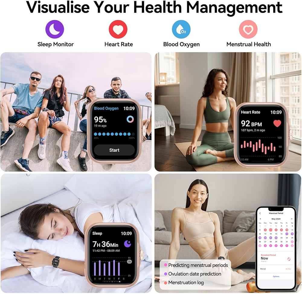 24/7 Health Monitor: Get a better understanding of your body with our Smartwatch. Equipped with advanced sensors, it provides real-time heart rate and automatic sleep monitoring for comprehensive sleep analysis (awake, light, deep, rem). Make informed decisions about your health and adjust your lifestyle accordingly. Better sleep, better day.