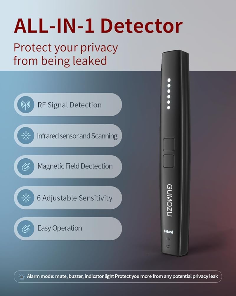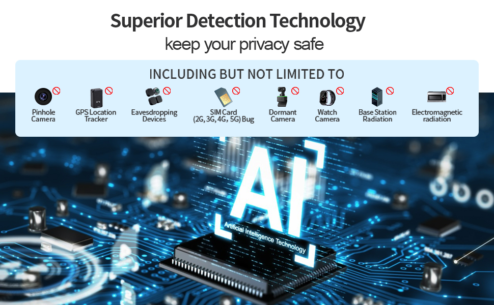 𝗣𝗥𝗜𝗩𝗔𝗖𝗬 𝗣𝗥𝗢𝗧𝗘𝗖𝗧𝗜𝗢𝗡 𝗘𝗫𝗣𝗘𝗥𝗧: professional hidden device detector equipped with the advance anti-interference AI chip and high-accuracy inside signal induction antenna and strong magnetic induction probe. Advanced laser sensing probe and upgraded infrared light. Save your detection time and effort.