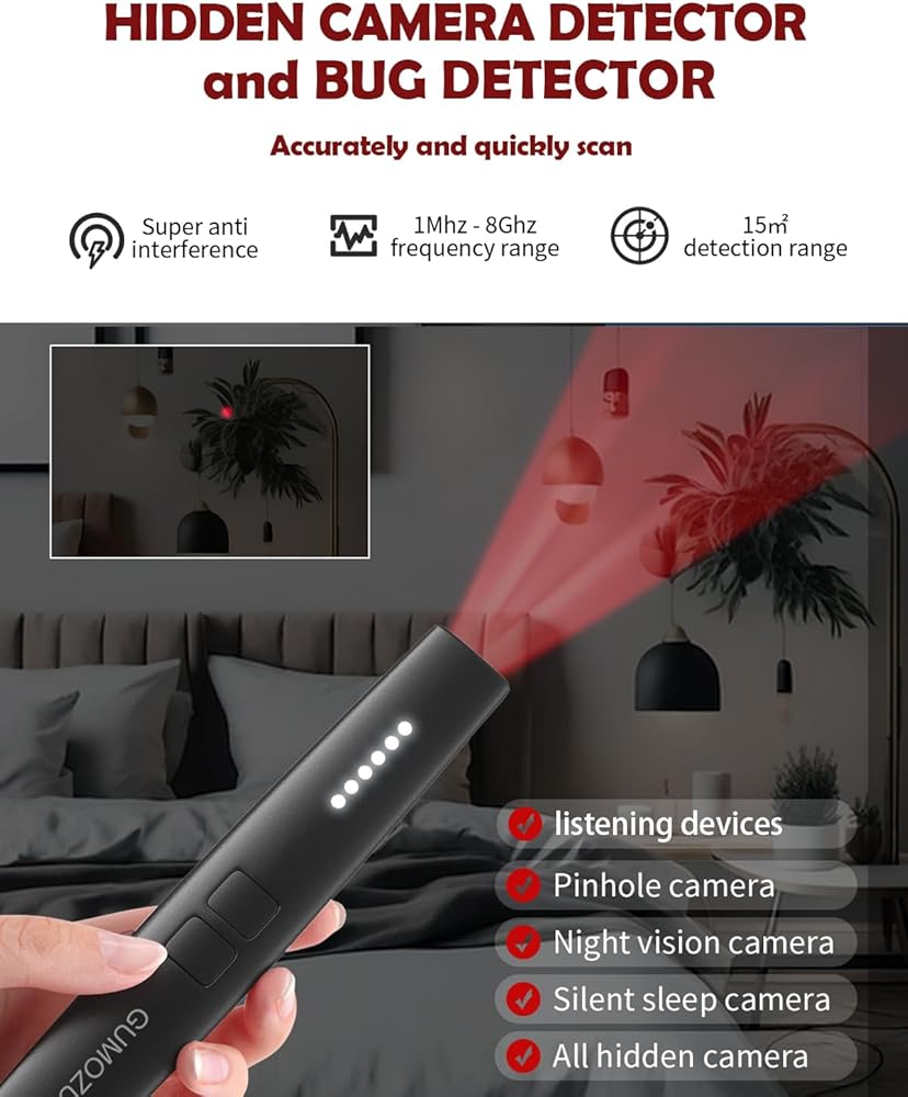 𝗨𝗦𝗘 𝗜𝗧 𝗔𝗡𝗬𝗧𝗜𝗠𝗘, 𝗔𝗡𝗬𝗪𝗛𝗘𝗥𝗘: with this camera detector for hotels, travels, car, office, Airbnb, vacation rentals etc.,you will never afraid of the privacy leaking from public restrooms, board rooms, office space, dressing rooms, fitting rooms, bathroom, bedroom, gym / locker rooms, apartments etc. You can easily and cautiously discover all suspicious things at anytime.