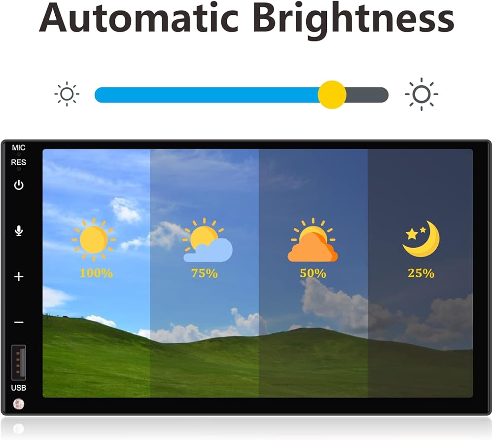 【Automatic Brightness】This unit has a built-in ambient light sensor. It can adjust the screen brightness according to the ambient light. The screen will automatically reduce the brightness when you drive into the tunnel. When you drive at night, the screen will switch to the minimum brightness automatically. You will no longer bother by the high-lighted screen. (Also, you can turn this settings on/off by yourself.)