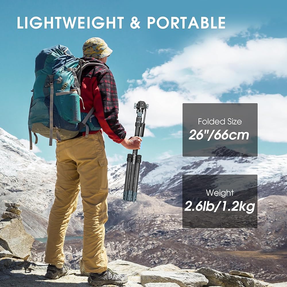 📷PERFECT TRAVEL MONOPOD: Our monopods weigh just 2.6 lbs (without head) and can hold up to 44 lbs. With a maximum height of 74", the monopod folds down to just 26", making it perfect for outdoor shooting.