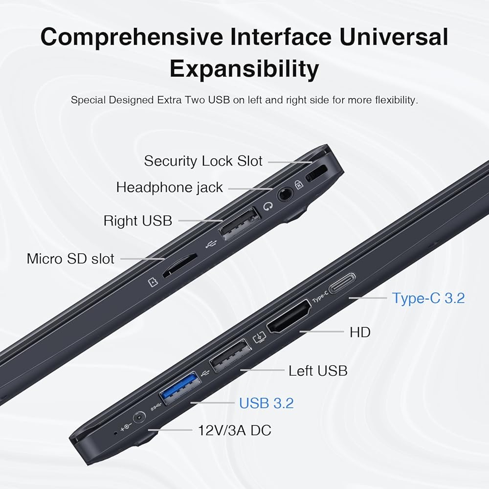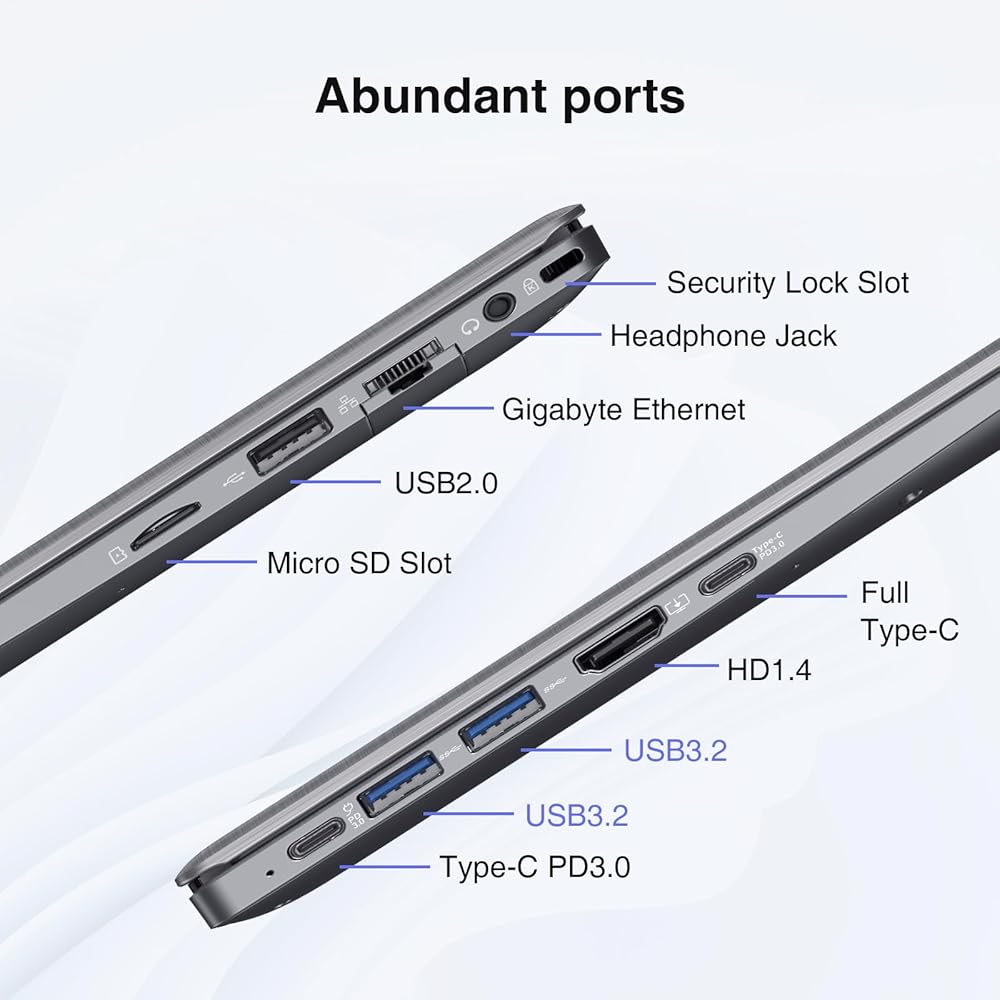 معالج قوي: تم تجهيز الكمبيوتر المحمول الذي يعمل بنظام Windows بمعالج Intel Core N95 سريع وفعال يمكنه التعامل مع جميع احتياجات الحوسبة الخاصة بك بسهولة.