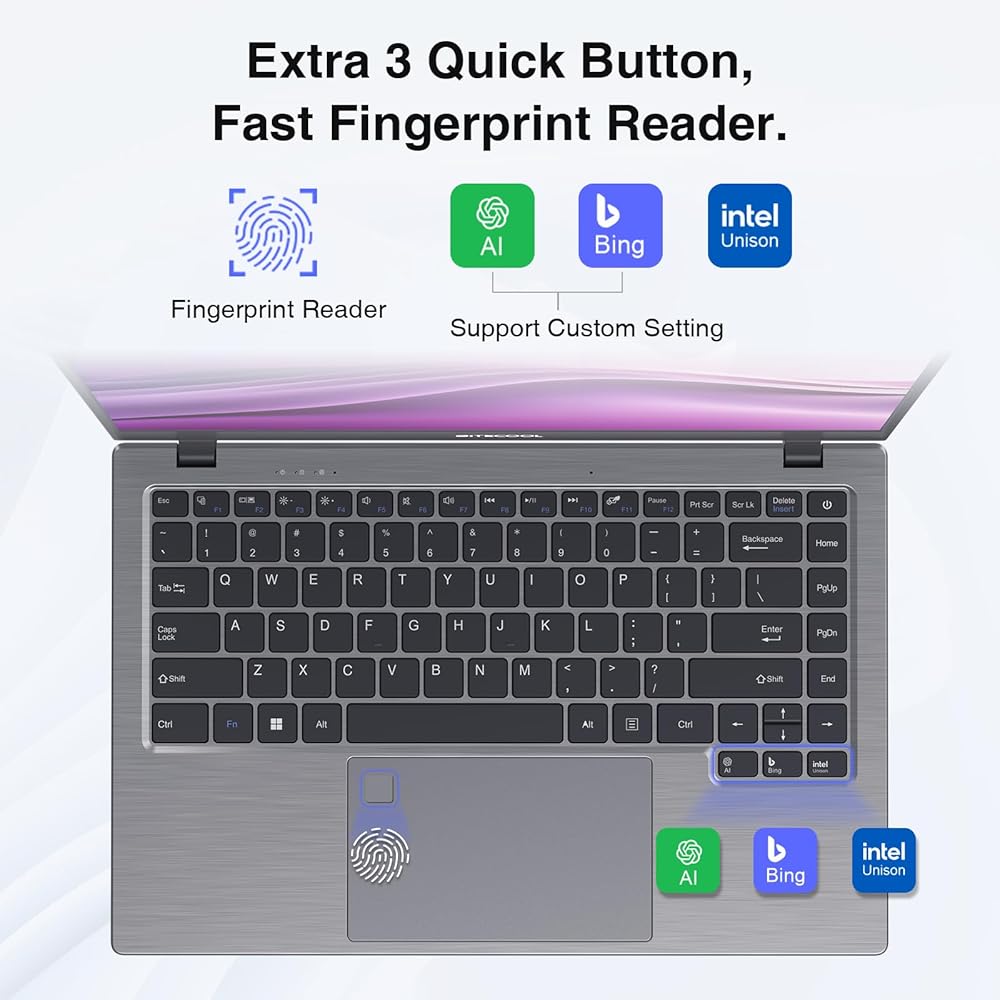 3 أزرار سريعة إضافية وبصمة الإصبع: تصميم مبتكر مع 3 أزرار سريعة إضافية لسهولة الوصول إلى تطبيقات الذكاء الاصطناعي، كما يدعم 2 من 3 الإعدادات المخصصة، وفي الوقت نفسه، فهو مزود بقارئ بصمات الأصابع لتسجيل الدخول الآمن.